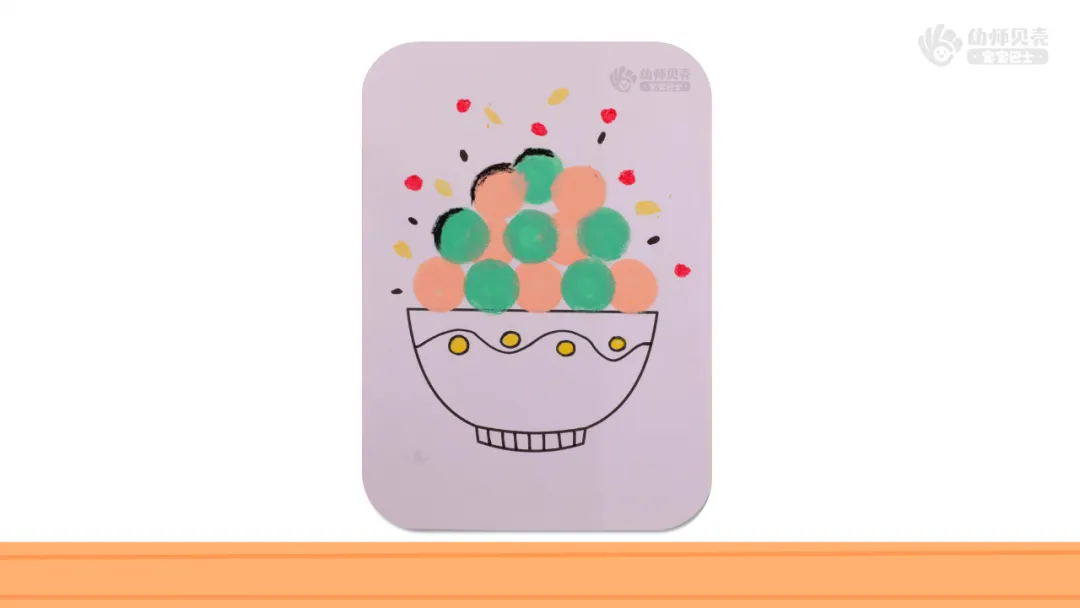 小结:可以用圆形的海绵印章印压出元宵的形状。