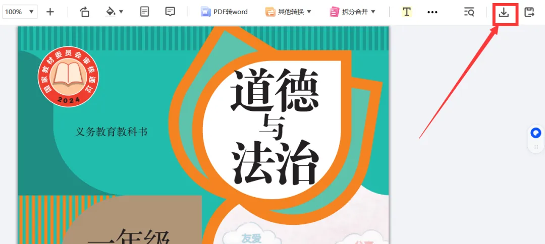 输入代码后,按回车键,就会出现的想要的教材的PDF格式,按下载图标保存就行啦