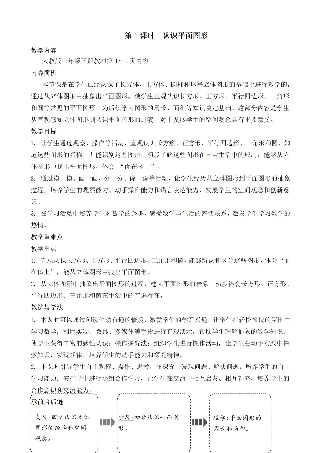 >2026春人教版一年级数学下册教案,全册书更新完.