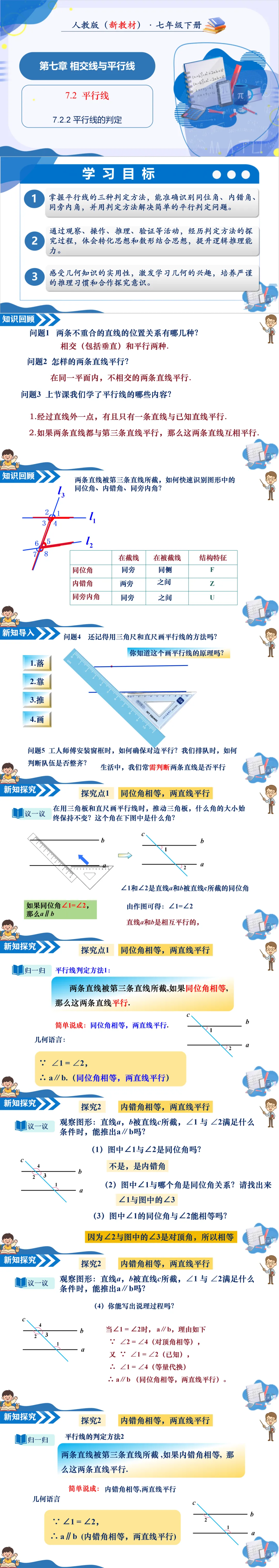 >初中初一七年级下册数学教学课件-平行线的判定(人教版-新教材)
