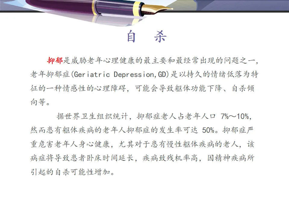 【天长皖嫂养老课堂】PPT课件:老年人护理安全防范与管理(误吸、窒息、烫伤、走失、自杀)