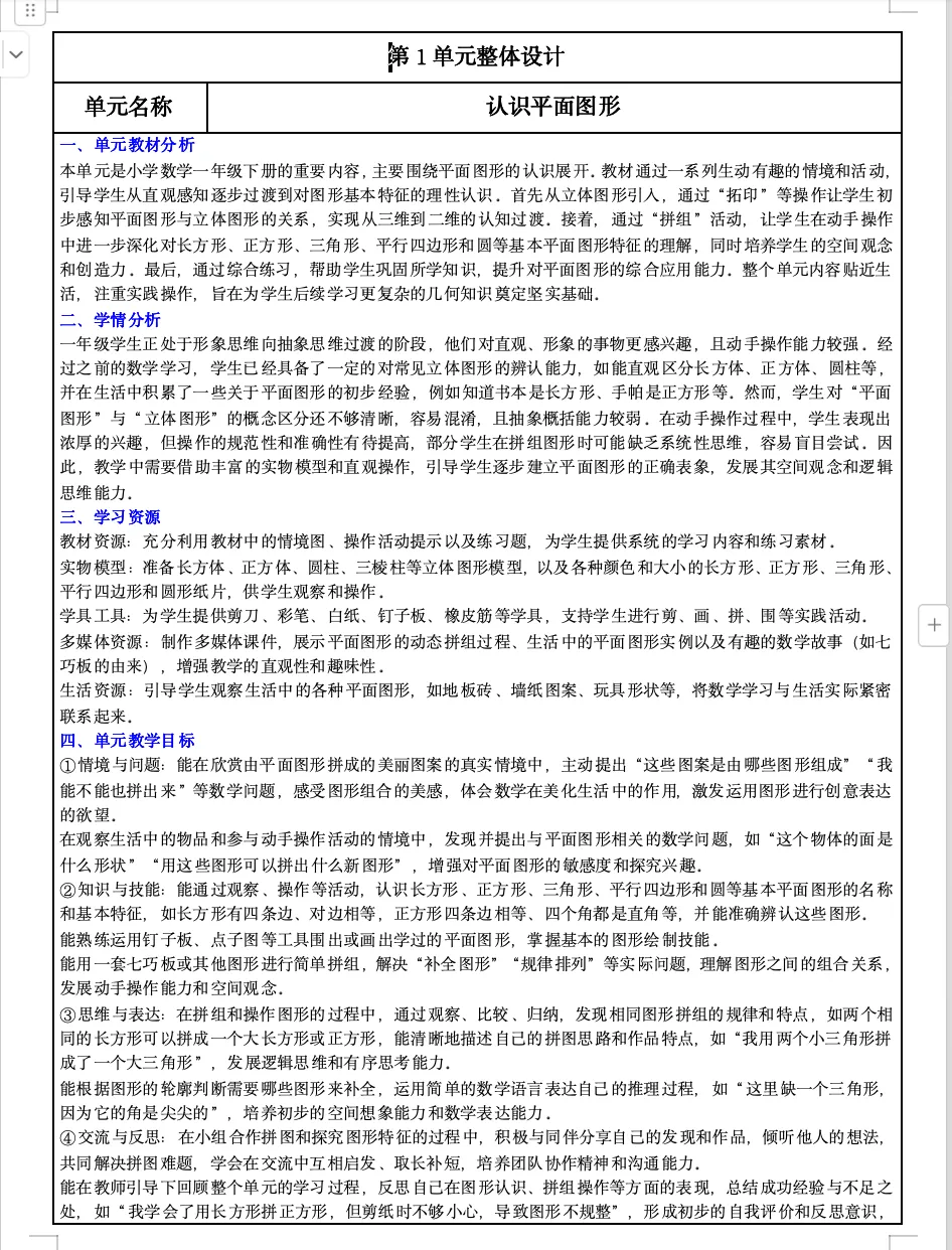 全册单元核心素养教案