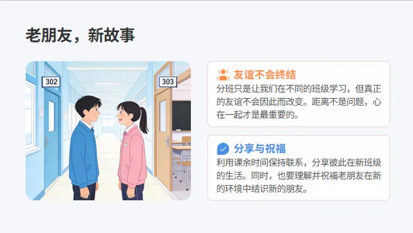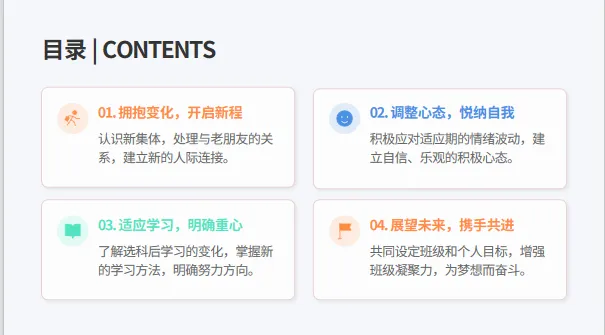 很多学生高一上学期已经和班级老师同学培养了深厚的感情,又要接受新班级,并且从9科到6科,会觉得很不适应。开学第一节班会课,应该是非常重要的。