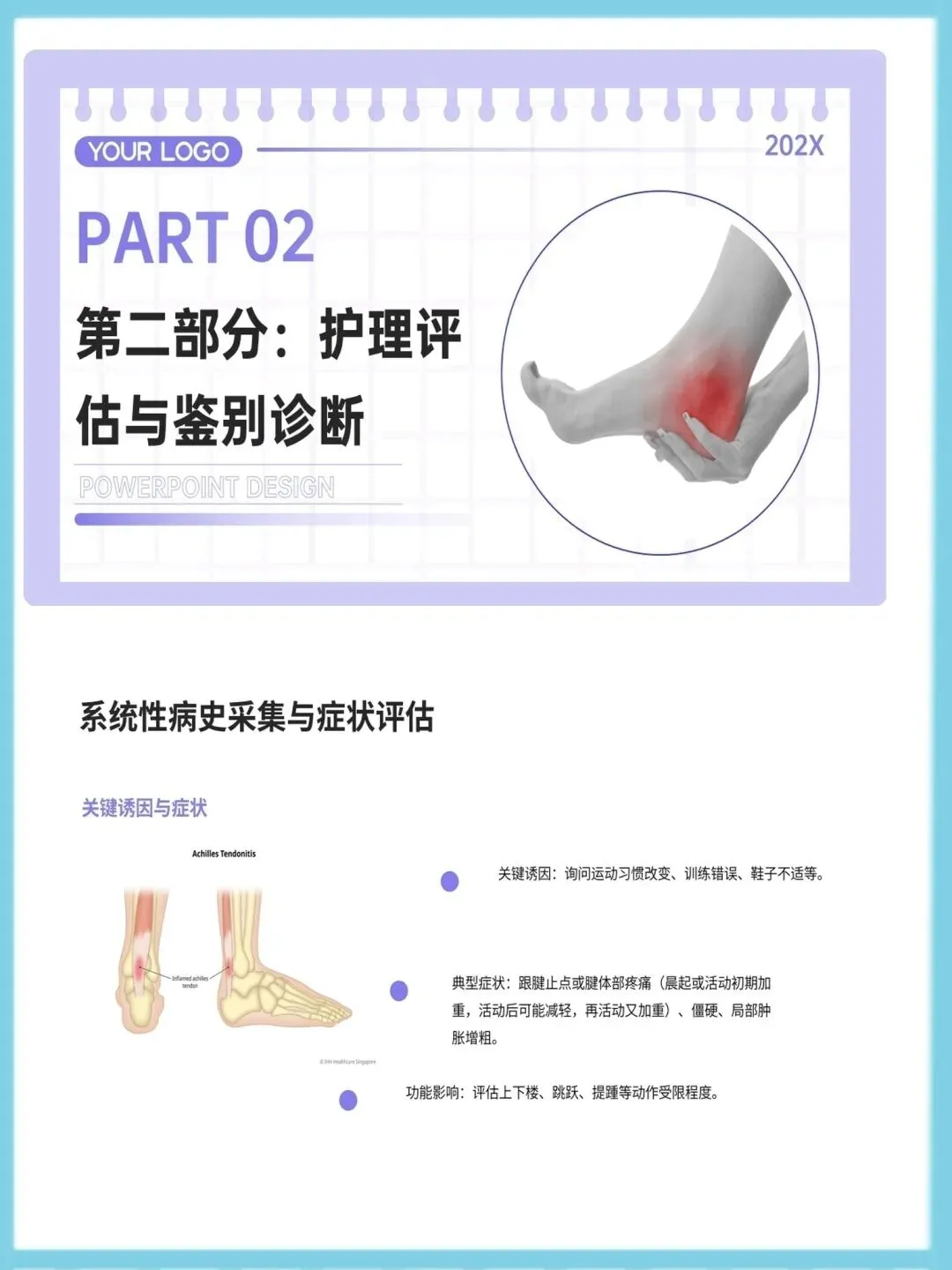 >跟腱炎护理查房ppt课件模板,可以编辑
