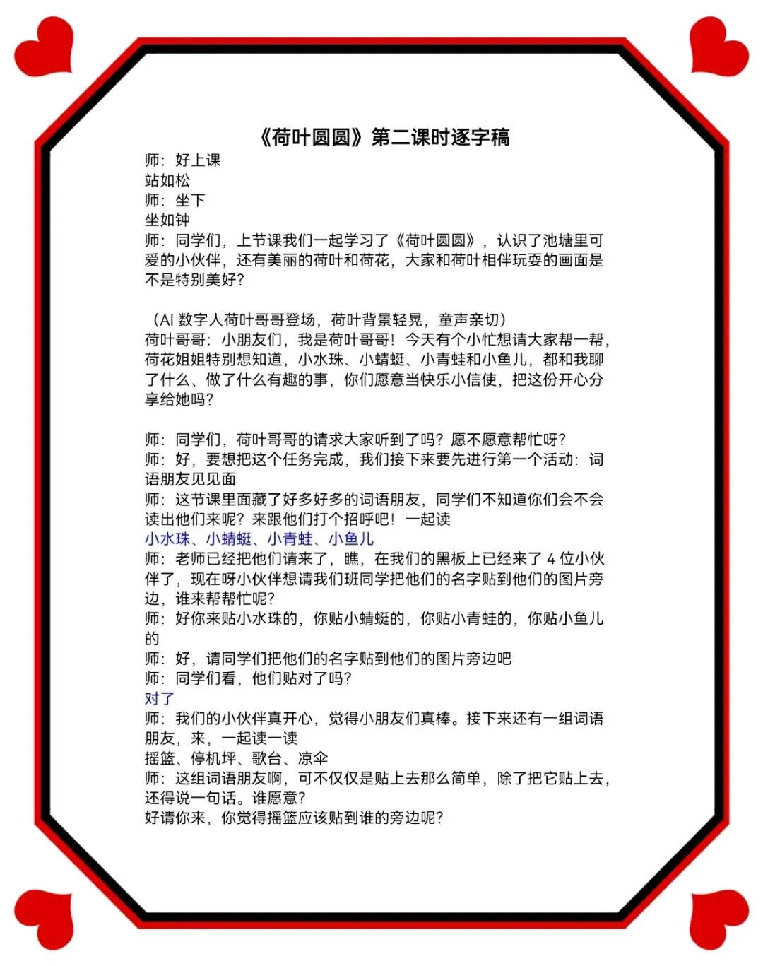 >AI助力一年级下册公开课《荷叶圆圆》课件+逐字稿+板贴+课堂实录