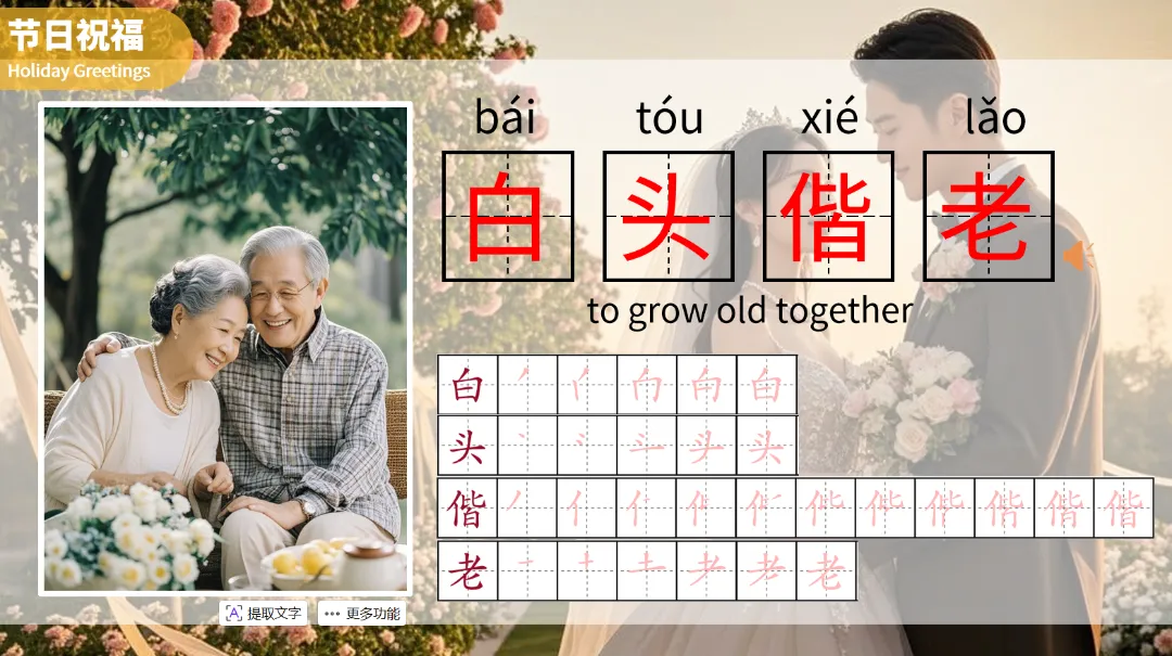 此外,还通过“白头偕老”等吉祥语和图案,传达了剪纸所蕴含的美好寓意。