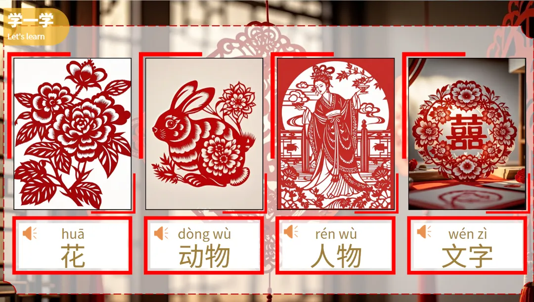 今天,我们一起学习富有趣味性的对外汉语课件——“中国剪纸”。