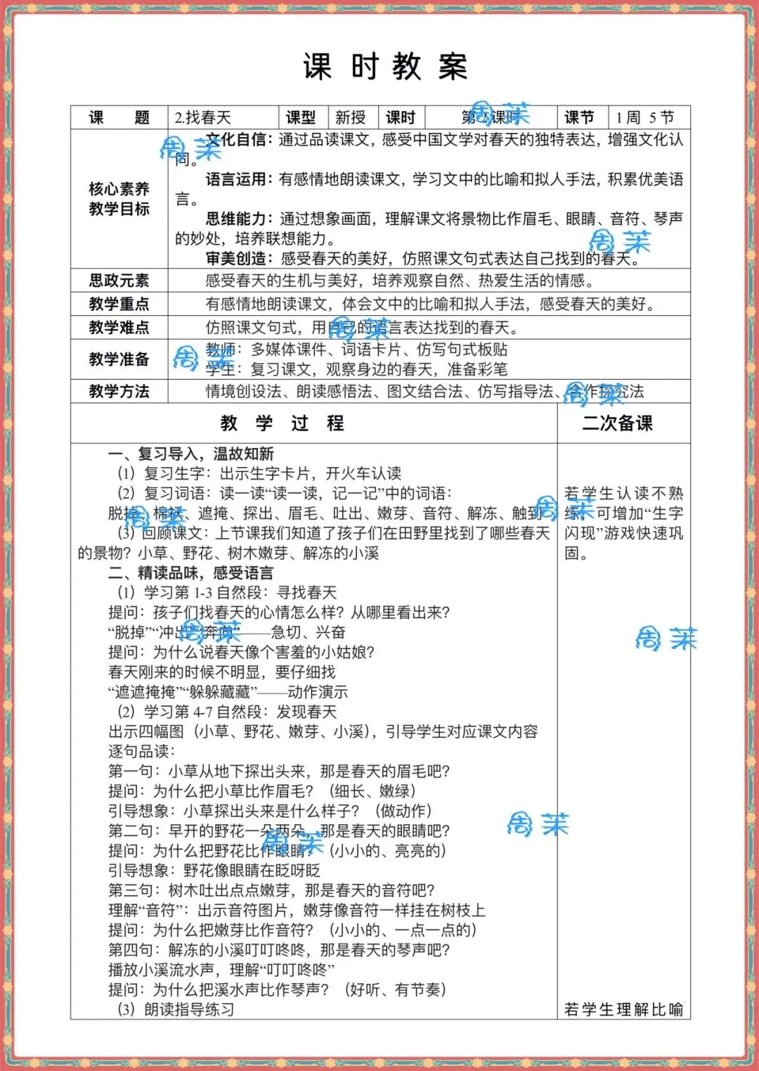 当前位置:首页>教案>二次备课反思有内容的二下语文核心素养教案