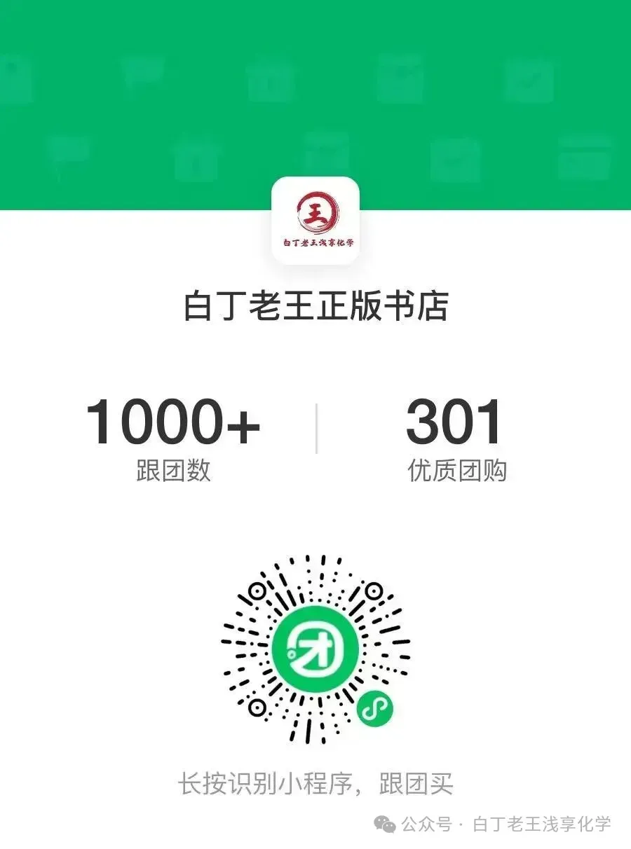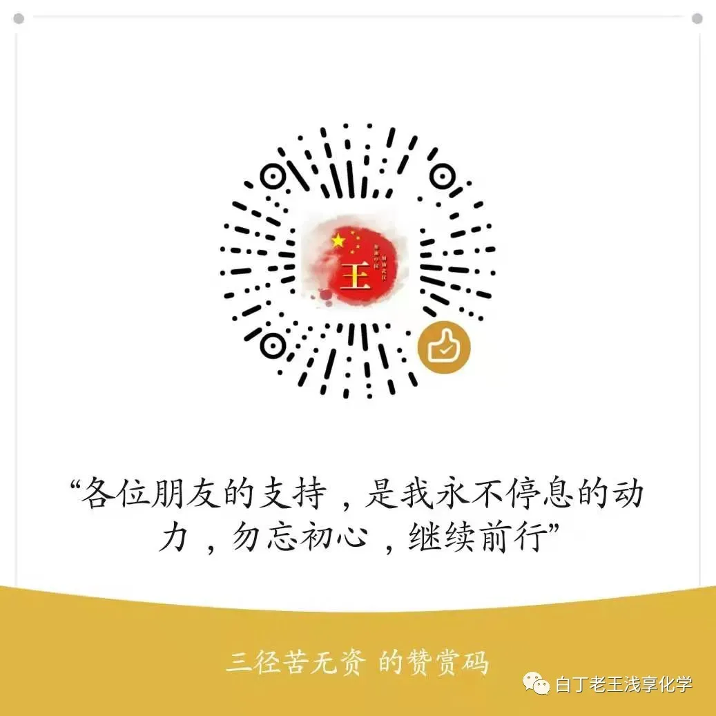 ❤温馨提示❤:微信公众号平台近期改变了推送规则,不再按发布时间排序推荐。想要不错过每日推送,可以把【白丁老王浅享化学】设为星标。致教师同仁:欢迎加入【白丁老王浅享化学】教师群,与全国化学教师交流教学,获取资源。加群请联系微信 W275039962,注明“加群”。