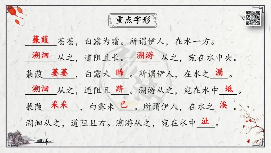 (3)虚词:在古典诗词中,虚词的锤炼恰到好处时,可以获得疏通文气,开合呼应,悠扬委曲,活跃情韵,化板滞为流动等美学效果。