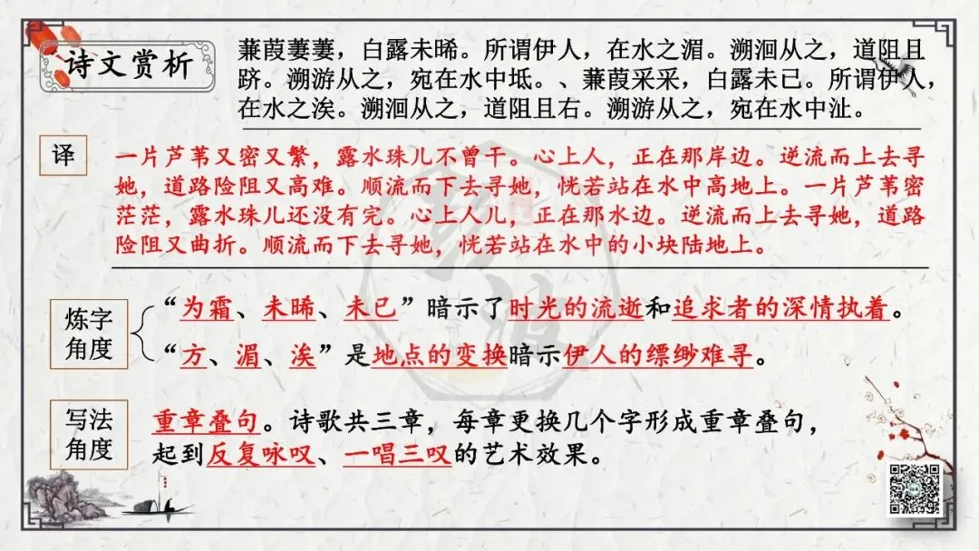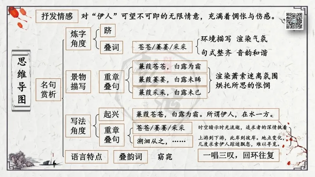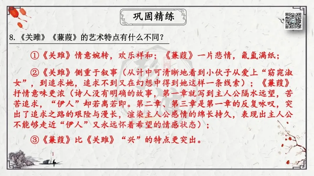 2、结构形式:诗歌的结构形式,常见的首尾照应,开门见山、层层深入,先总后分,先景后情、卒章显志,过渡、铺垫、伏笔等。