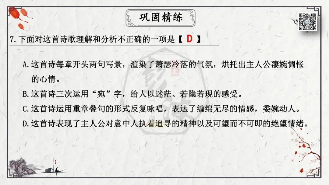 《语文课程标准》要求初中学生“诵读古代诗词,有意识地在积累、感悟和运用中,提高自己的欣赏品位和审美情趣”。