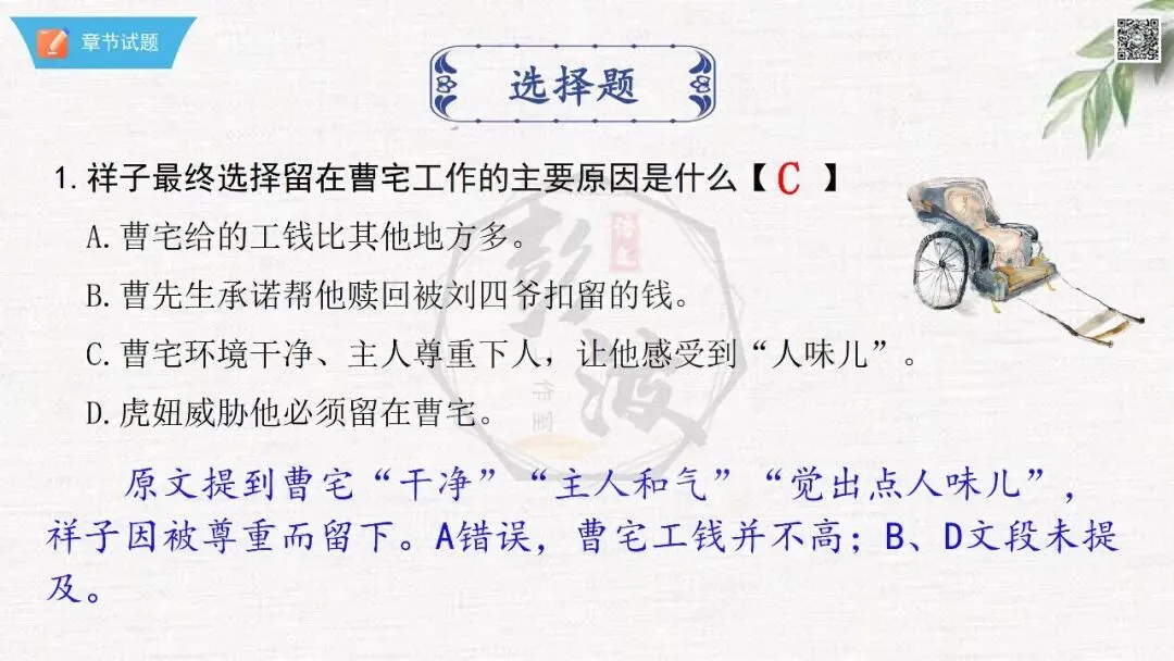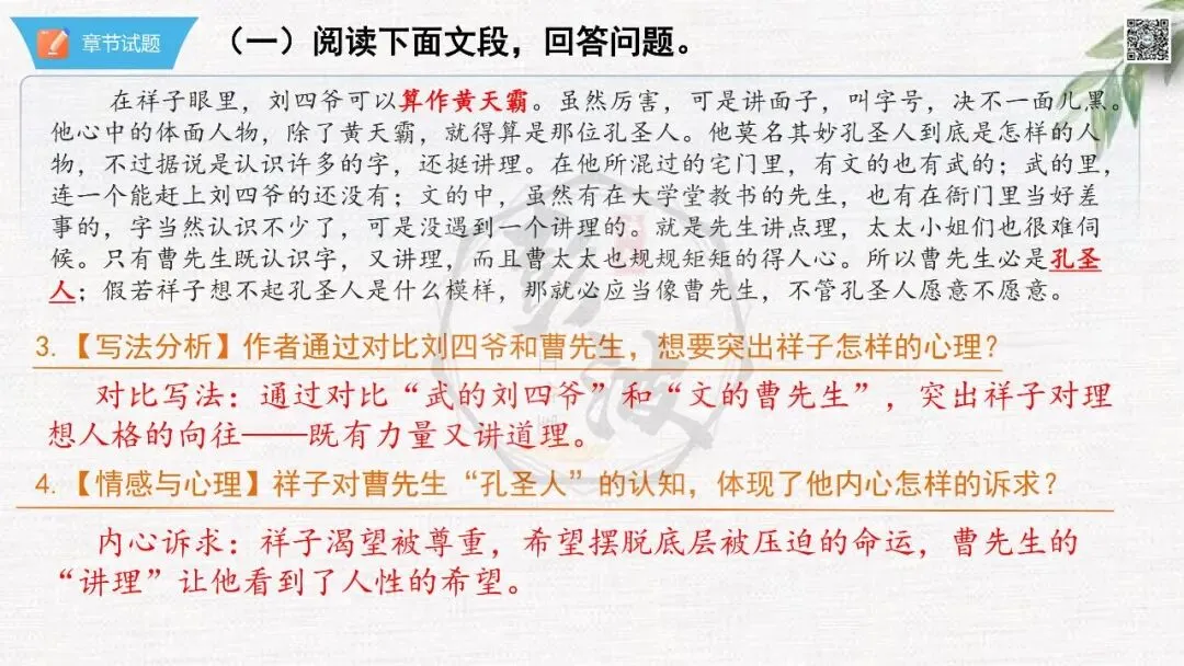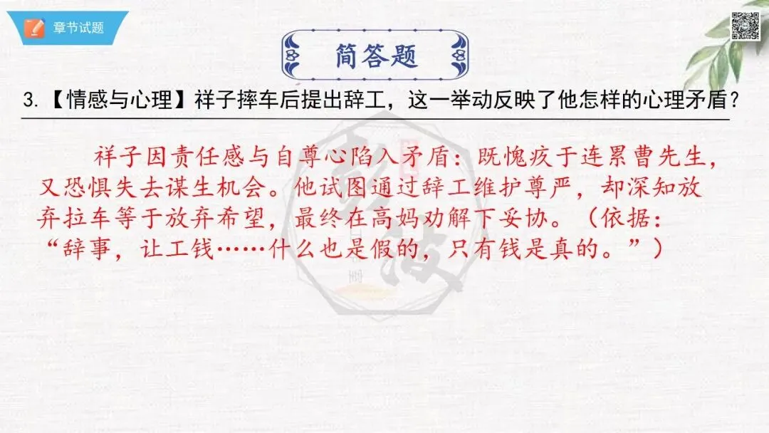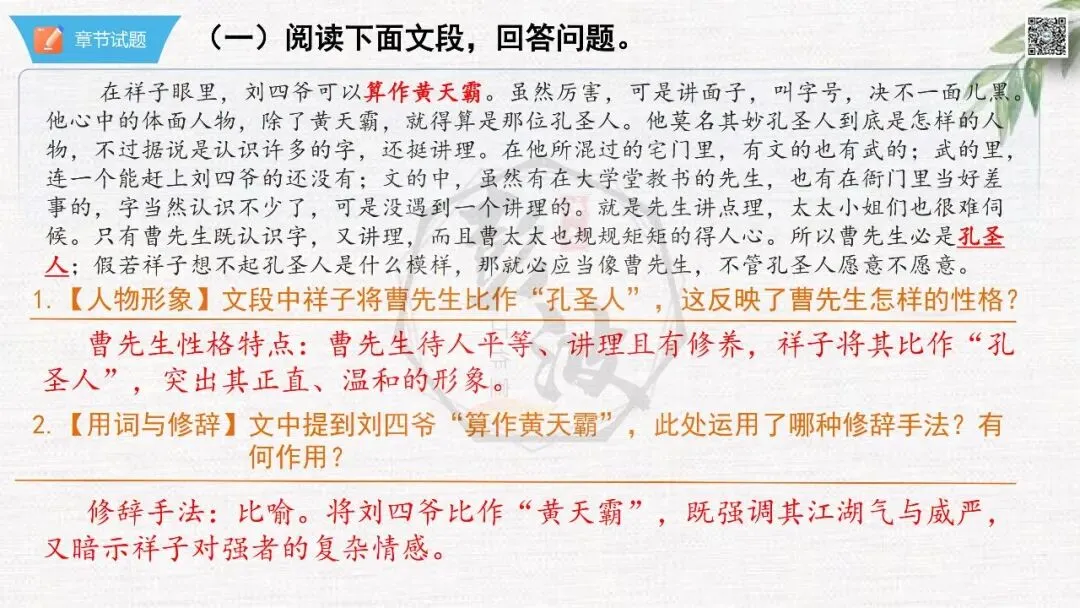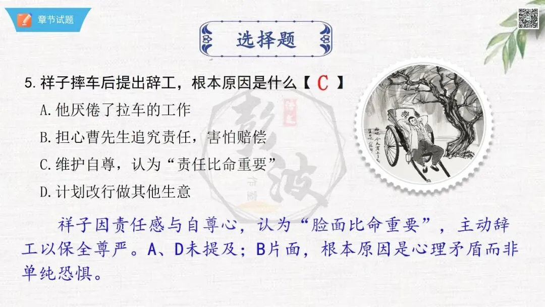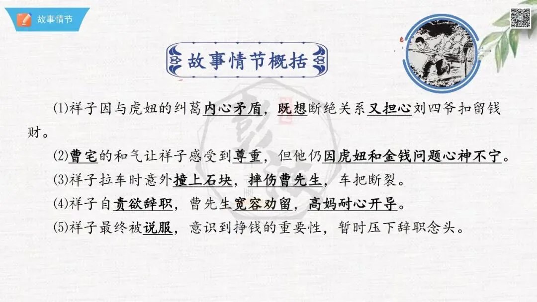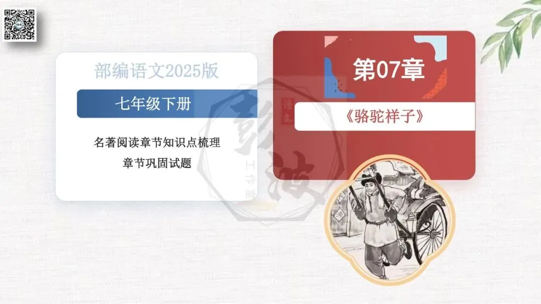 ◆02《骆驼祥子》章节课件24章-情节梳理+人物形象+语句赏析+章节试题(PPT)(65元)