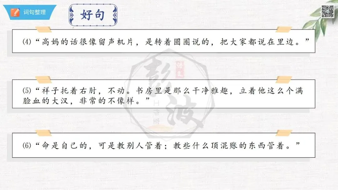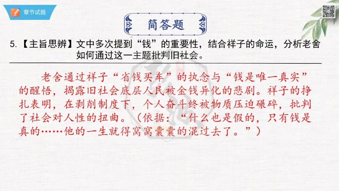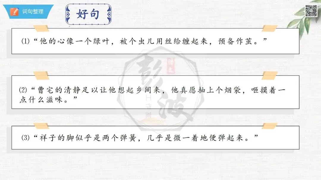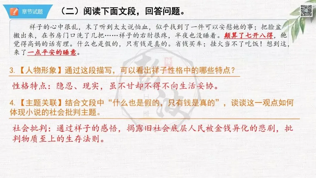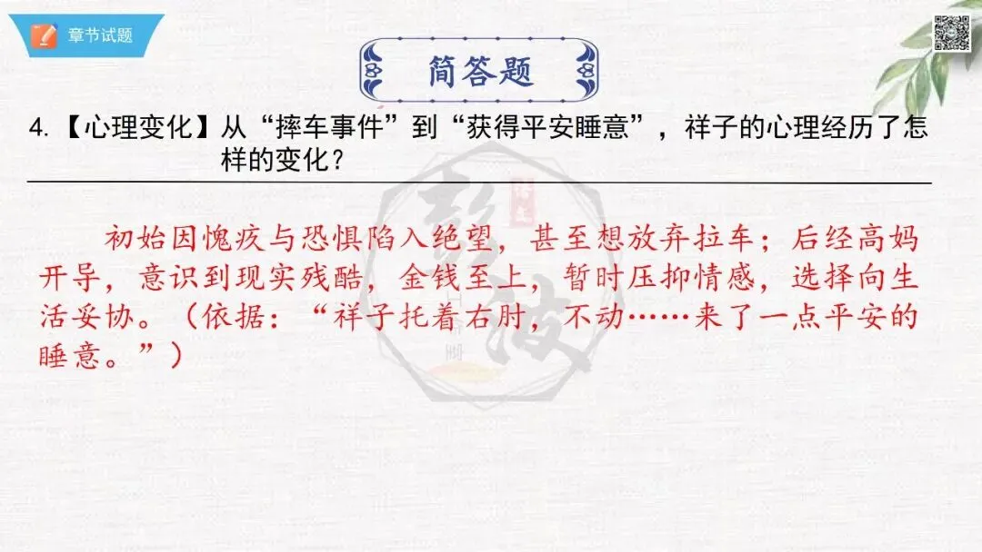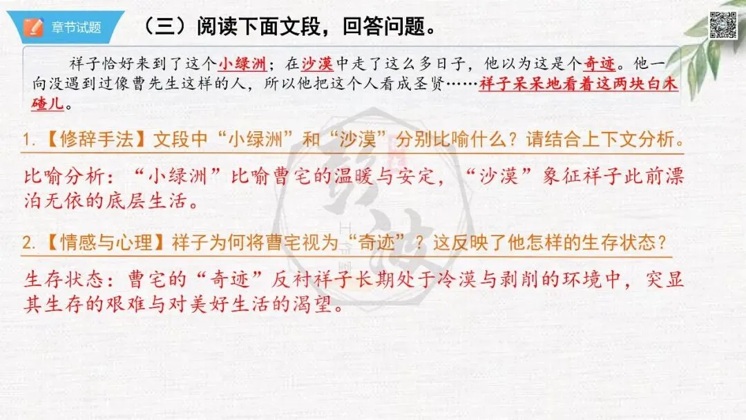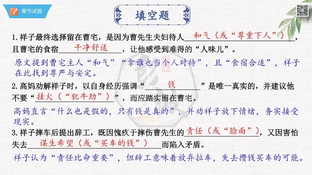 ◆02《骆驼祥子》章节课件24章-情节梳理+人物形象+语句赏析+章节试题(PPT)(65元)