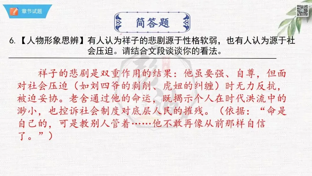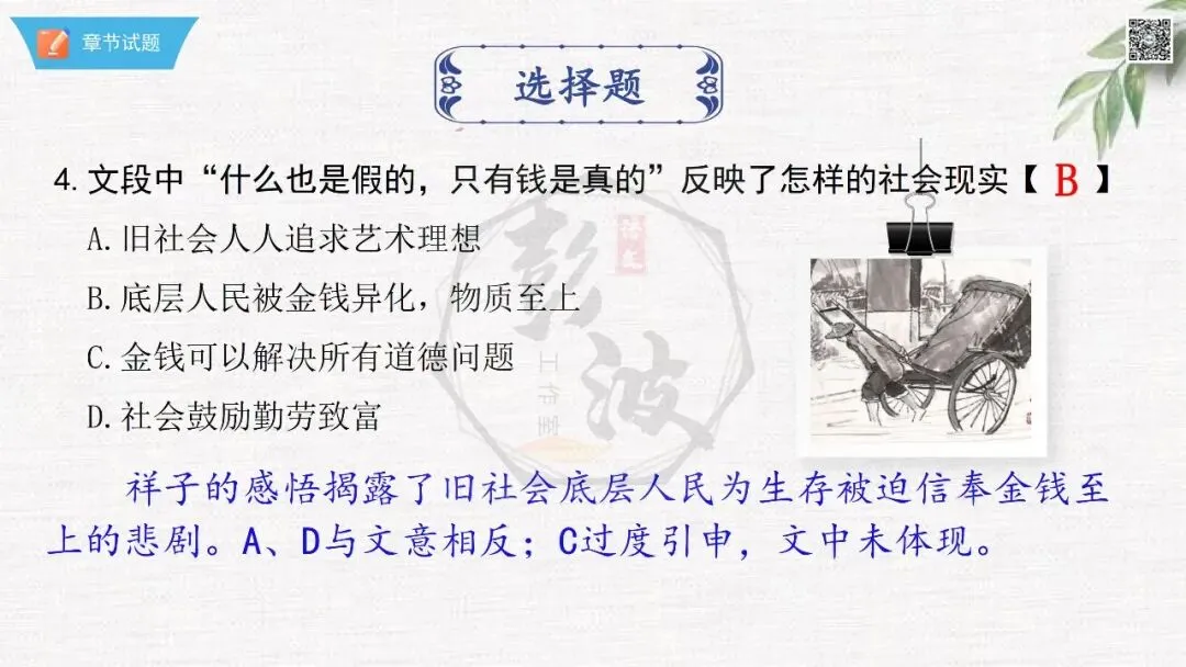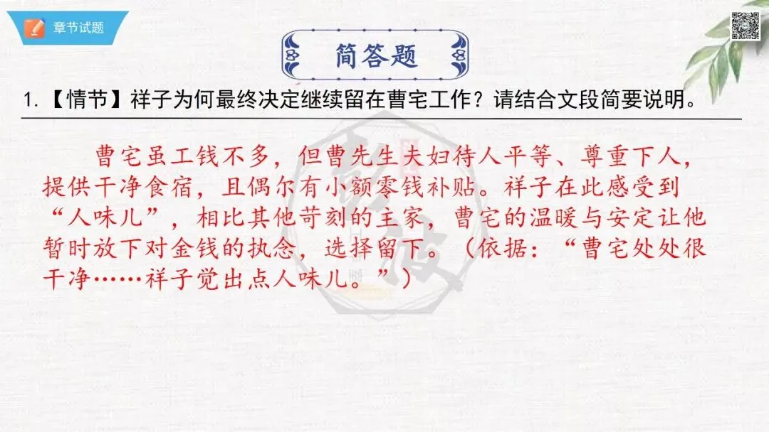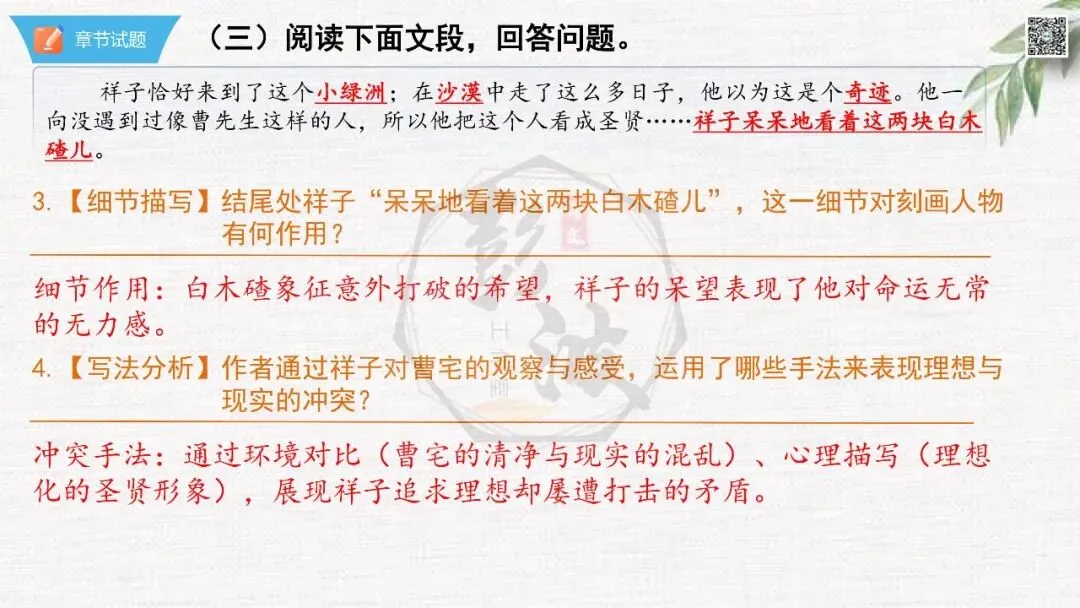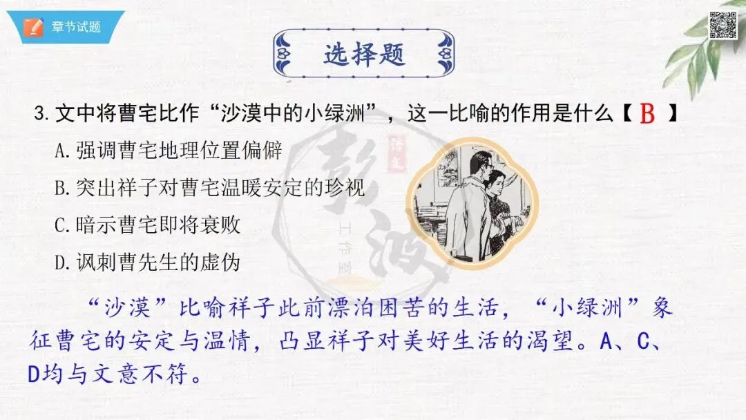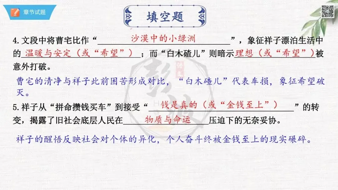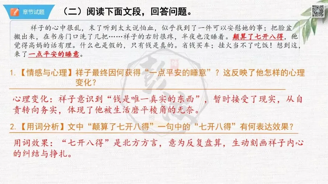 ◆02《骆驼祥子》章节课件24章-情节梳理+人物形象+语句赏析+章节试题(PPT)(65元)