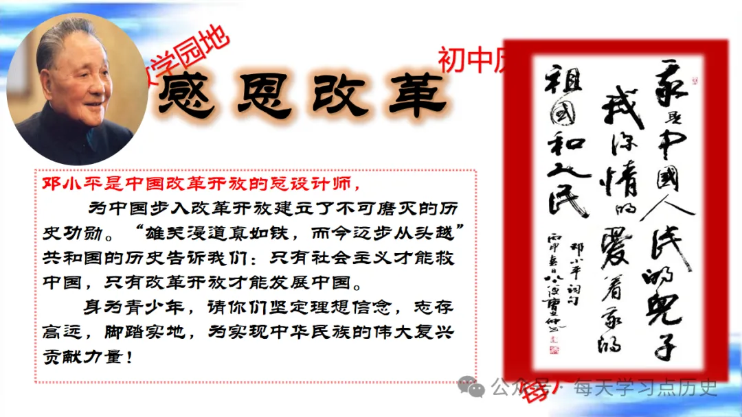 每天学习点历史公众号是初中历史教学园地的辅助号,发表的资料习题多点