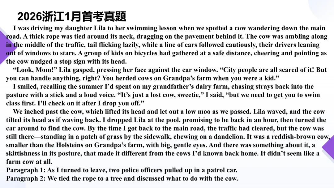2026年1月浙江首考读后续写课件