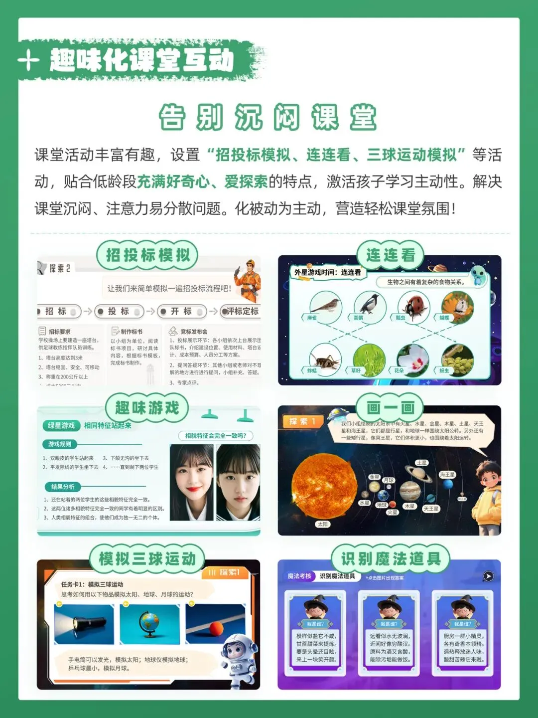 ·贴合新课标设计,以趣味情境化、大单元融合为核心,将科学知识与生活紧密关联,打造沉浸式课堂体验。