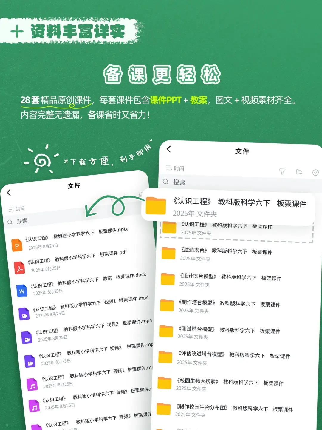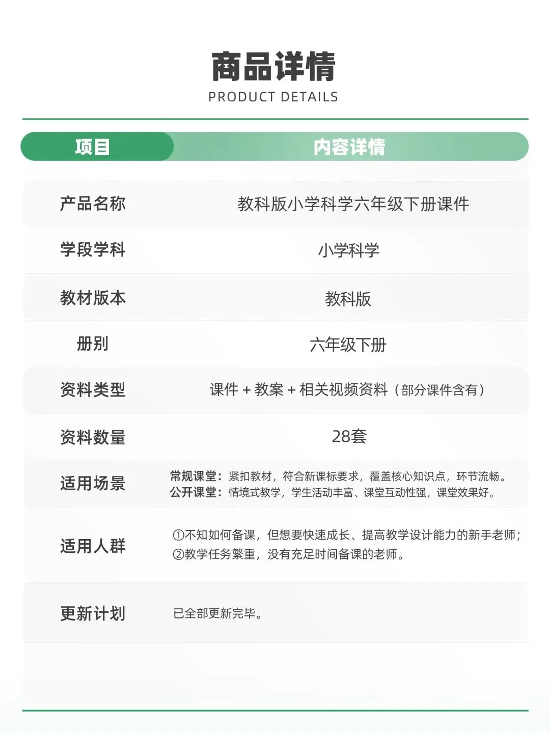 ·全套资源完备,含28套教科版六下科学精品 PPT、配套教案及相关素材,一站式满足备课需求,大幅提升备课效率。