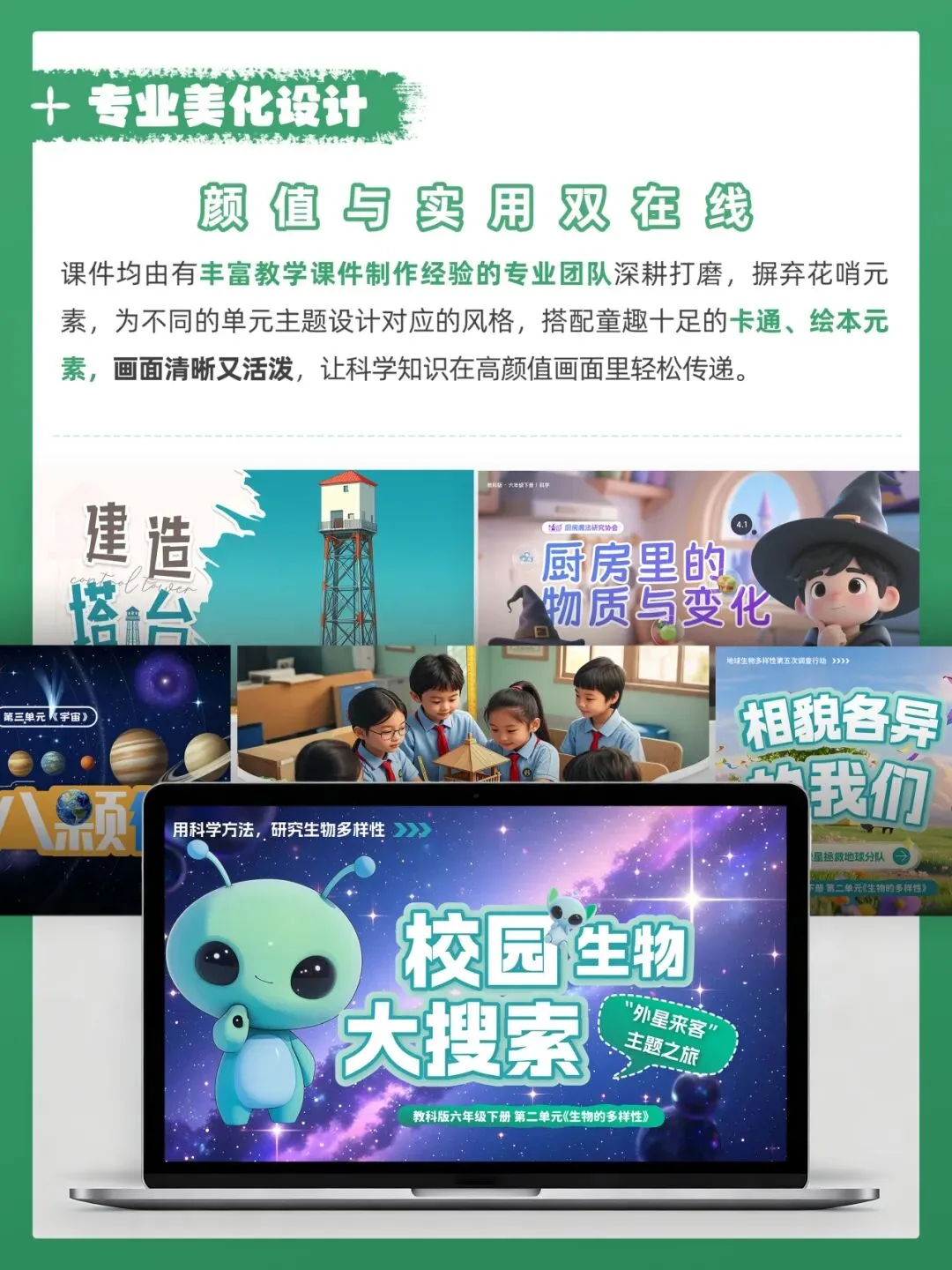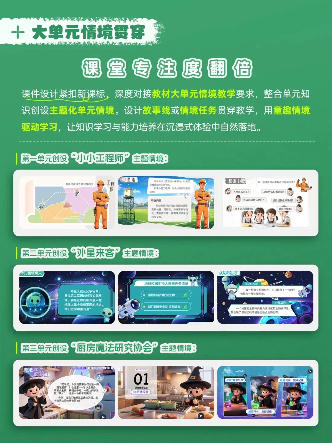 ·贴合新课标设计,以趣味情境化、大单元融合为核心,将科学知识与生活紧密关联,打造沉浸式课堂体验。