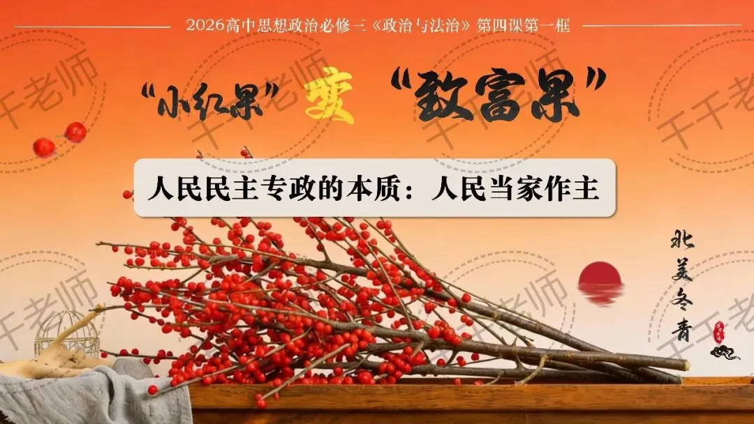 >公开课赛课课件|2026高中政治必修三4.1人民民主专政的本质:人民当家作主PPT+逐字稿(北美冬青:“小红果”变身“致富果”)