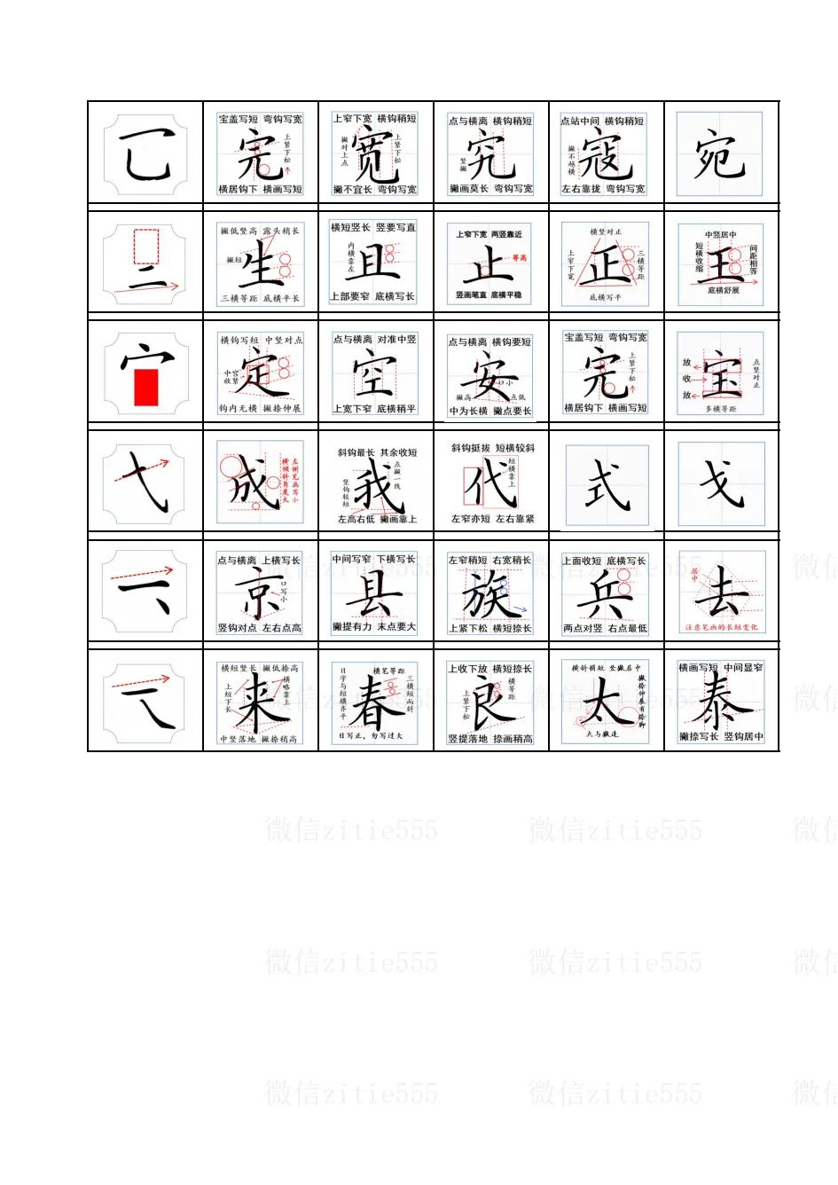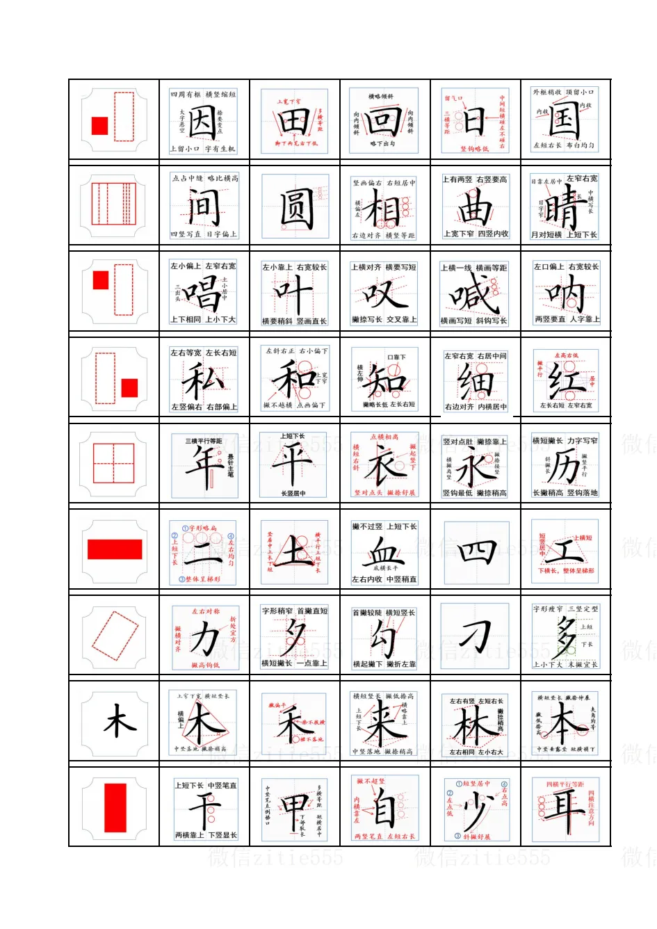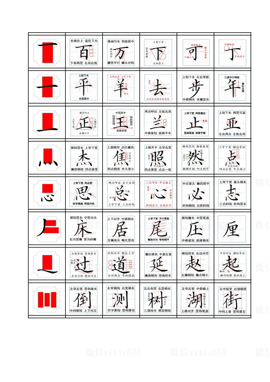 “找准主笔站得稳” “左右比例要分清” “上下对正一条线”