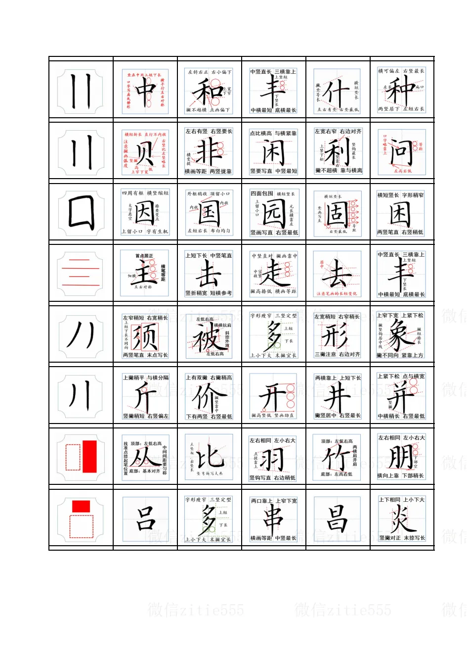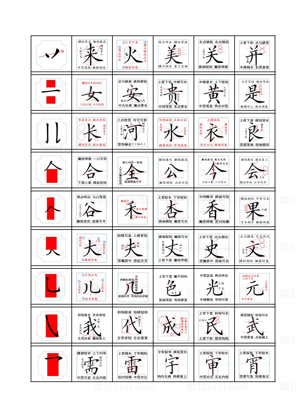 独体字秘诀:“找准主笔站得稳,笔画均匀不歪身。”