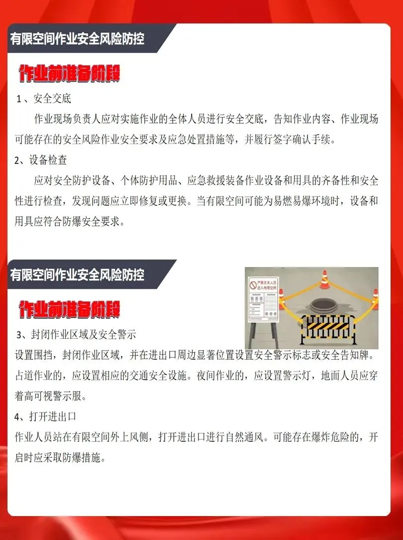 首先,要对有限空间进行风险评估。通过检测、分析等手段,确定有限空间内存在的危险有害因素及其浓度,评估作业风险程度。根据风险评估结果,制定相应的作业方案和安全措施。