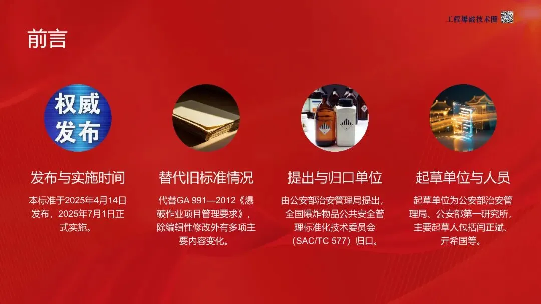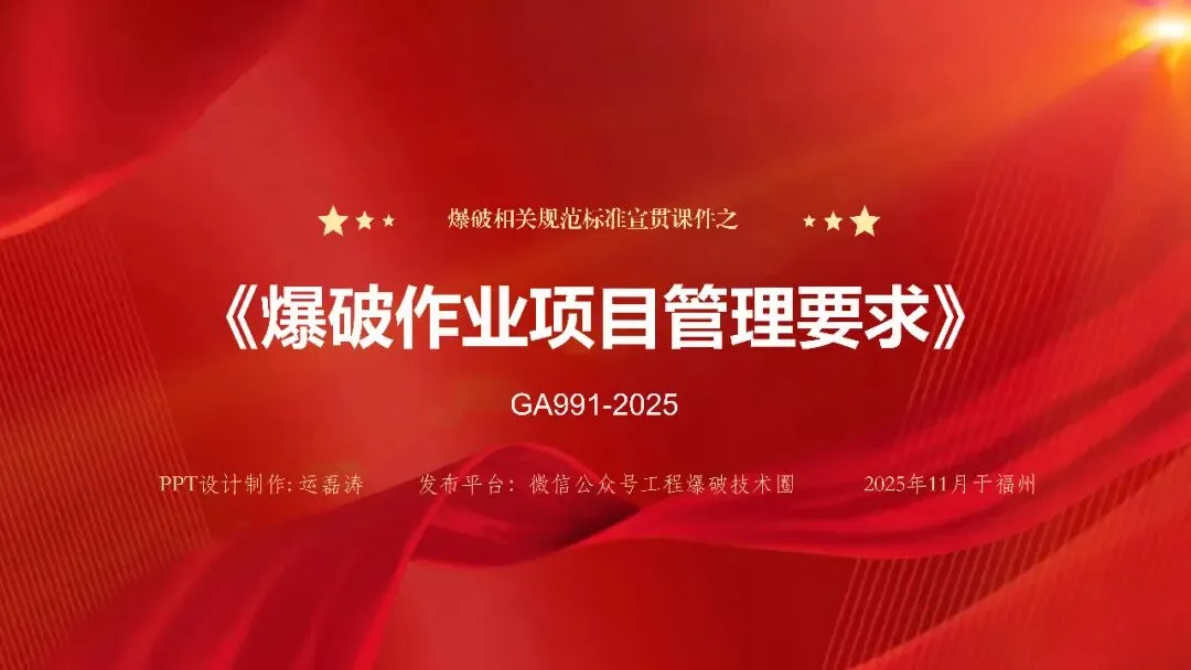 【PPT】爆破相关规范标准宣贯课件之《爆破作业项目管理要求》GA991-2025
