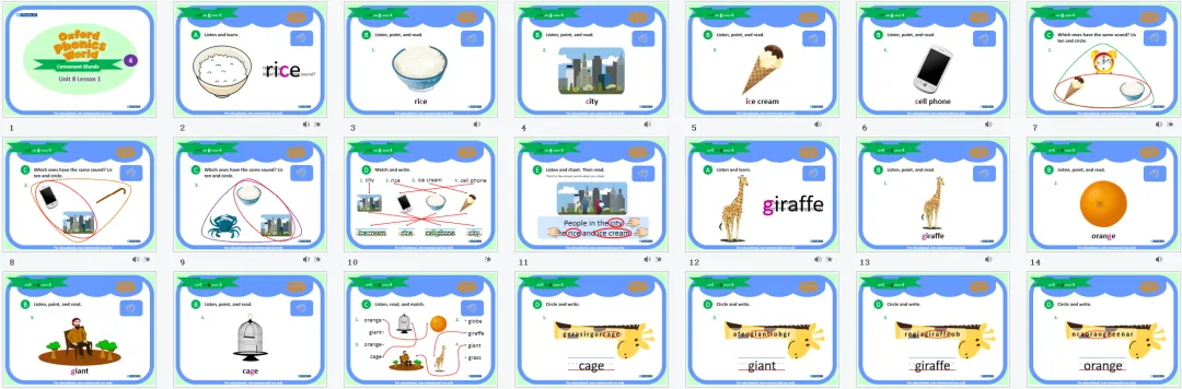 第四个级别一共20个PPT,讲解了辅音字母组合的发音: