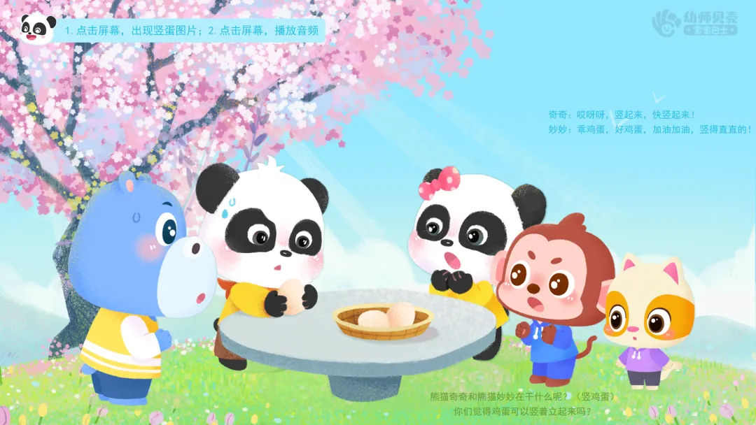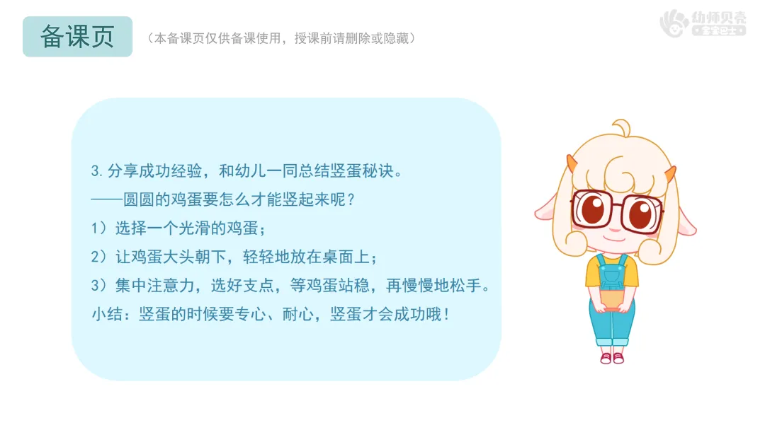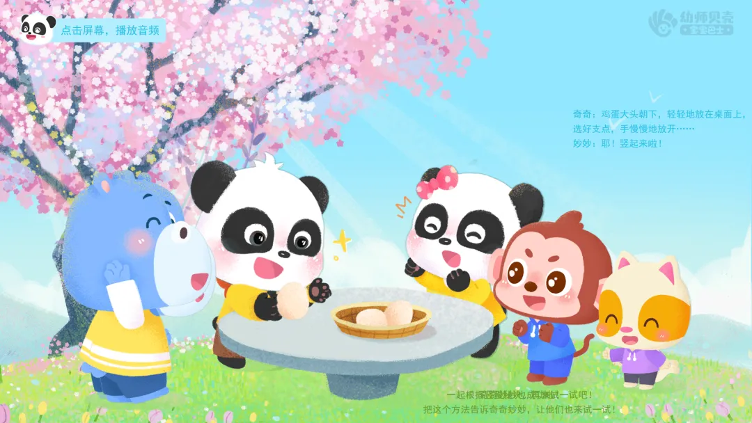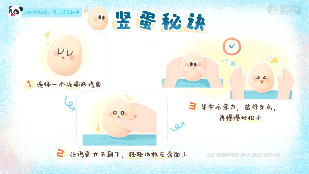4.将竖蛋秘诀教给奇奇妙妙,巩固竖蛋方法。