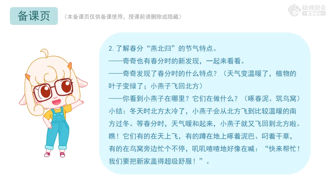 2.了解春分“燕北归”的节气特点。