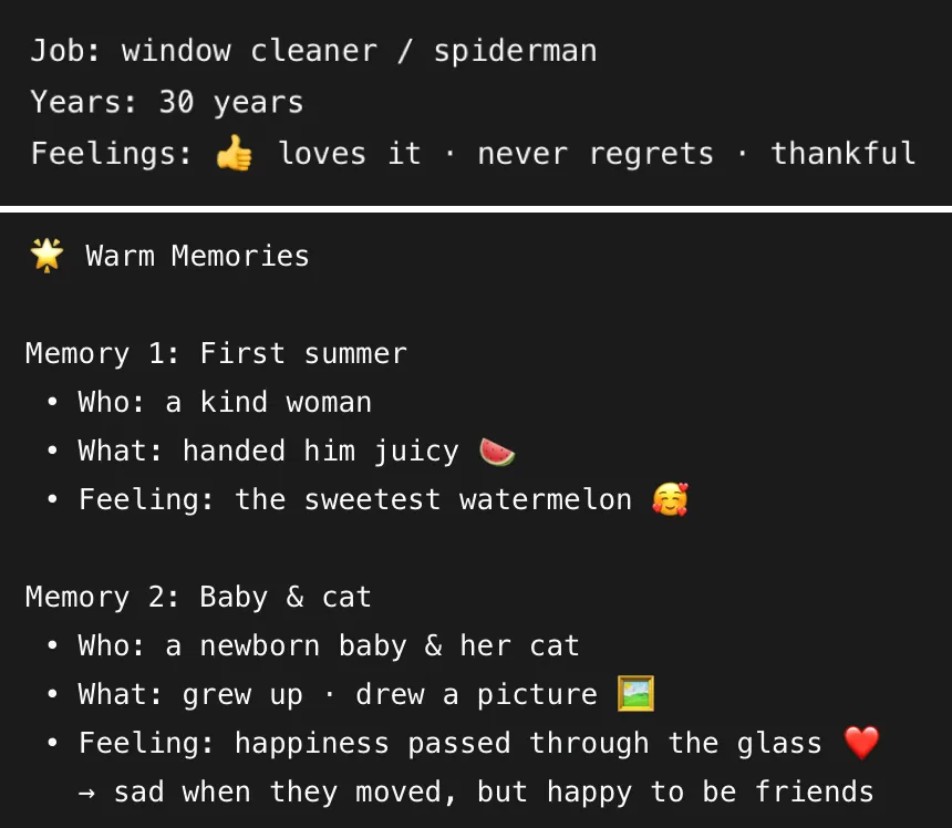 What 1)语篇主题与基本信息 本文属于“人与社会”主题范畴。这是一篇退休演讲,作者Robert是一名拥有30年工作经验的高空窗户清洁工。语篇回顾了他的职业生涯:第一个夏天遇到的善良女士(递西瓜)、陪伴成长的婴儿一家(成为朋友)、工作中的温暖瞬间。最后表达了对工作的不舍与感恩,并对即将入行的新员工给予鼓励与祝福。 2)所需语言技能: 阅读技能:略读获取主旨大意;扫读提取关键信息(人物、事件、情感);推断隐含意义(如“the sweetest watermelon”的象征意义)。 词汇技能:理解并运用核心词汇(如challenge, joy, regret, a sense of achievement, shine等)描述工作经历与感受。 语法意识:初步感知一般现在时与一般将来时的被动语态(如“will be kept”“is not always considered”)。 Why 作者回顾并分享自己30年职业生涯中的温暖故事与真实感受;表达对工作的感恩与不舍,传递“平凡工作中也能找到意义”的价值观;鼓励新入职的窗户清洁工,帮助他们看到这份工作的价值与光芒。 同时向学生传递职业无贵贱的价值观:任何工作都能带来成就感与人际温暖,工作中真正的收获不仅是物质回报,更是人与人之间的善意与情感联结; How 1)语篇体裁:第一人称叙事性演讲 2)篇章结构: 开篇(第1段):引入演讲背景,概括30年工作的总体感受——“充满挑战与快乐”。 主体(第2-4段): 第2段:第一个夏天的故事(递西瓜的女士)——体现陌生人的善意; 第3段:与婴儿一家的友谊(陪伴成长、画画告别)——体现长久的温暖与人际联结; 第4段:总结感悟——不后悔这份工作,因为它带来了善良的人、温暖的故事和成就感。 结尾(第5段):向新员工致辞,鼓励他们继续发光,送上美好祝福。 3)语言特征: (1)“spiderman”——形象化地体现高空工作的特点; (2)“the sweetest watermelon”——象征陌生人的善意带来的温暖; (3)“the city shines brighter because of us”——隐喻每个劳动者都在让城市更美好; (4)“the job will make us shine, too”——隐喻工作让人实现自我价值。 语言点丰富:包含核心词汇、被动语态(will be kept, is not always considered)、情感形容词(sweet, excited, sad, happy)等。