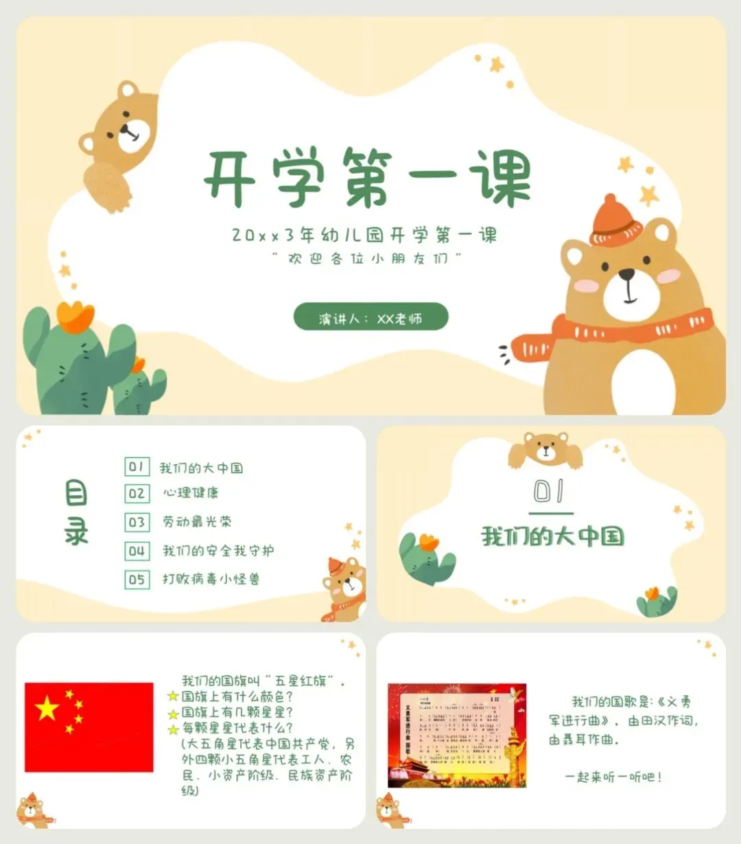 >幼儿园开学第一课小熊29页PPT+教案