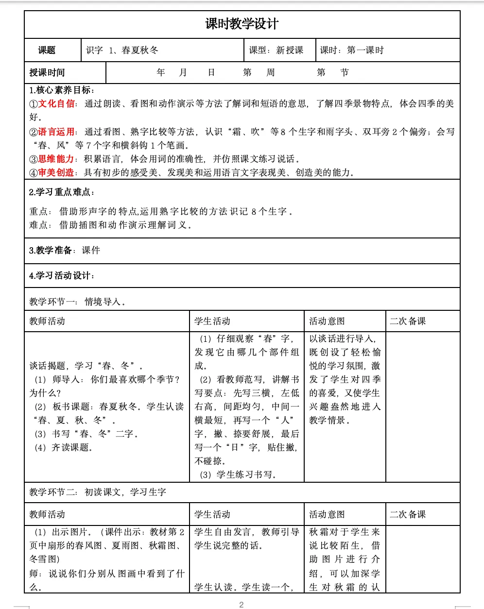 >【一年级】语文一年级下册核心素养教案(新教材)