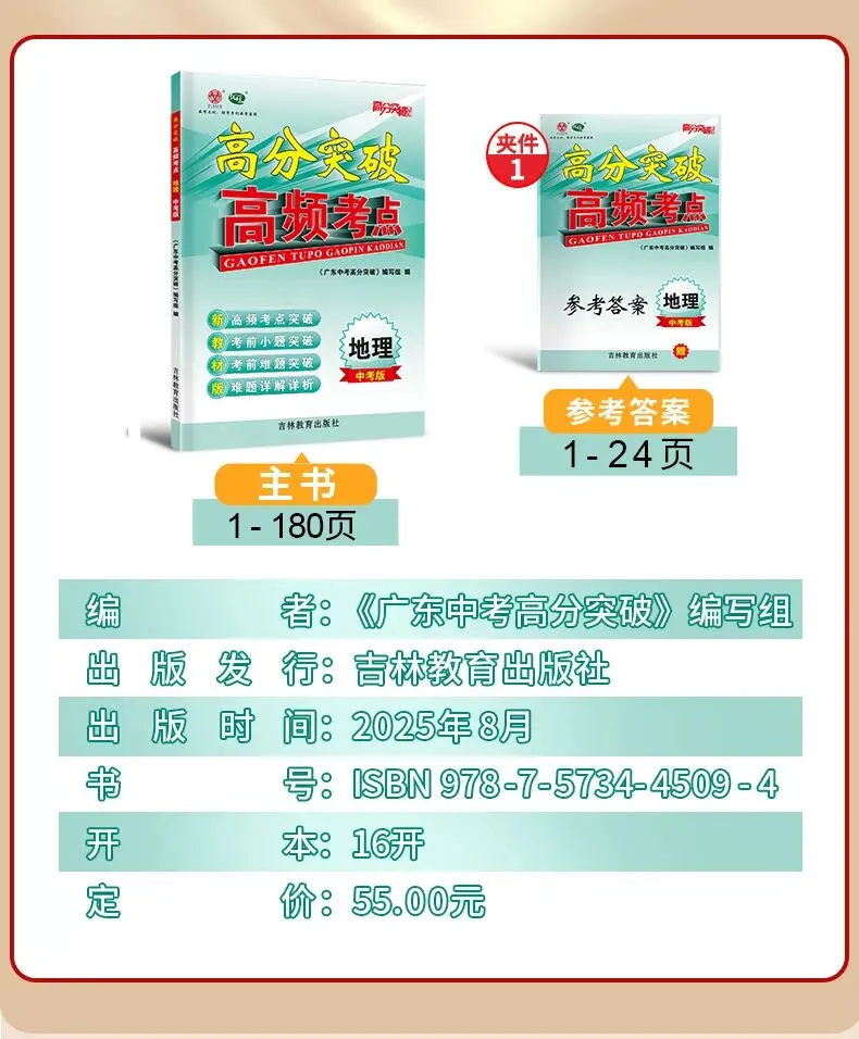 关注“地理教研联盟”回复“202602”获取电子版资料来源:网络,我们尊重原创,如存在文章/图片/音视频使用不当的情况,或涉及原创内容,侵害了您的权益,请随时与我们联系,联系(QQ):504580314。《高分突破 高频考点 中考版》重磅上市!✔18 个常考专题 ✔64 个高频考点✔20 套必刷小题 ✔20 套必刷难题原价 55 元,现限时5折疯抢!高频考点精准掌握,拒绝反复无效刷题!