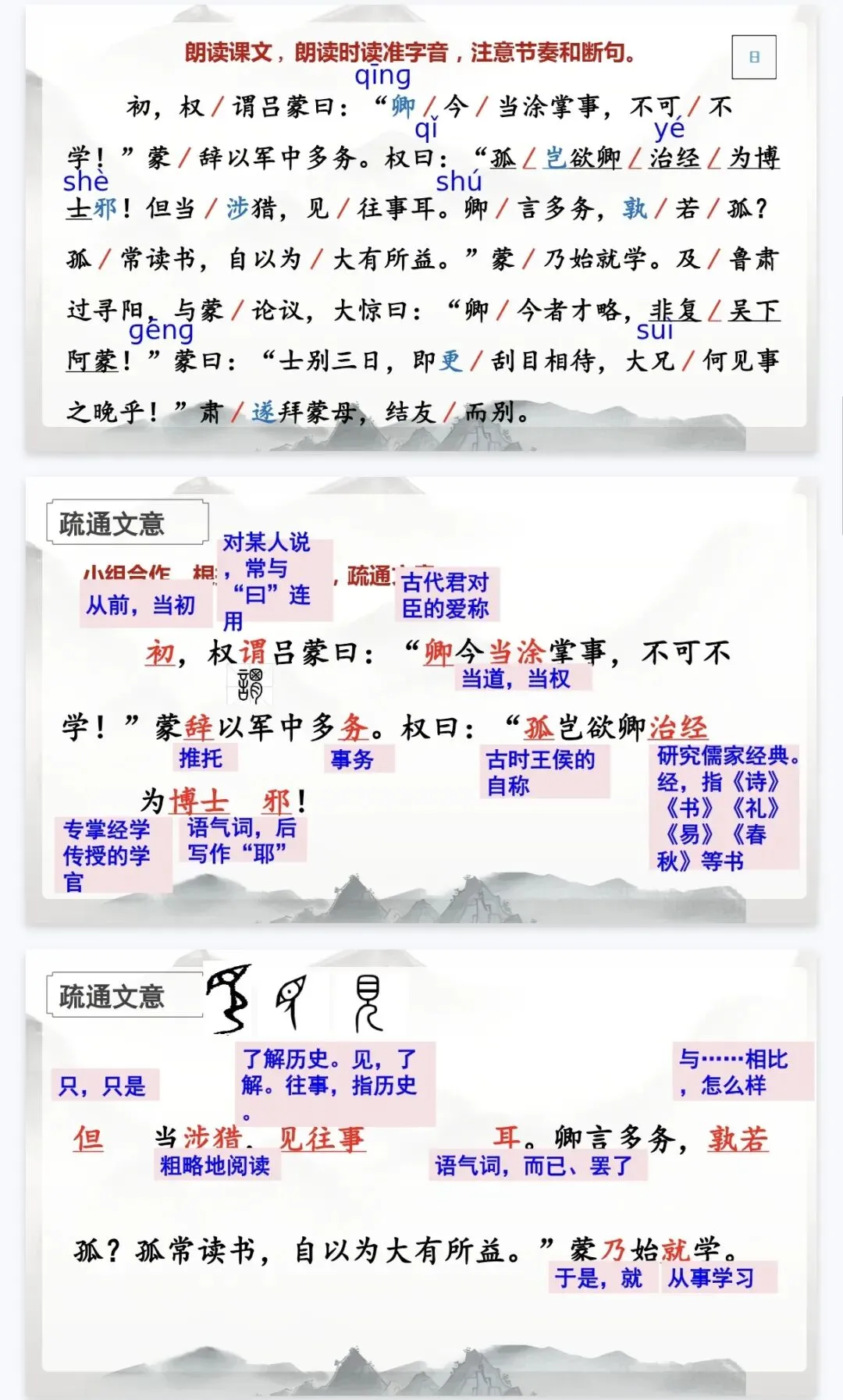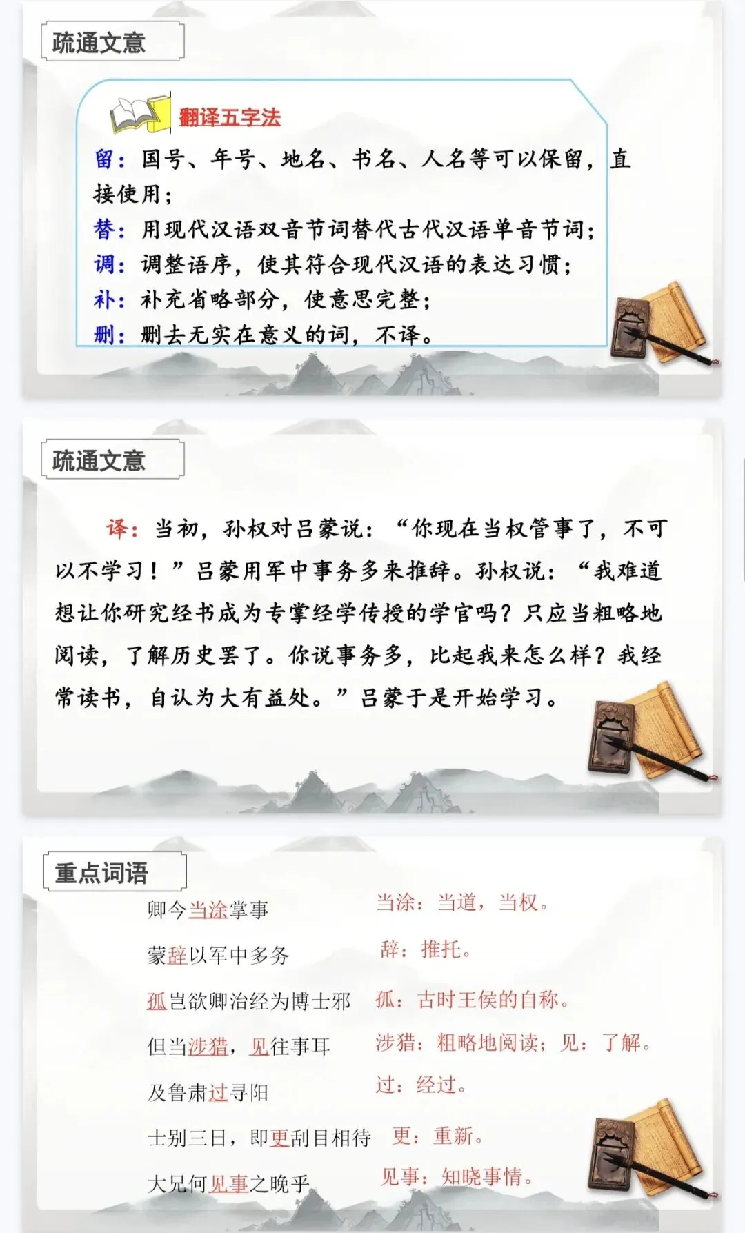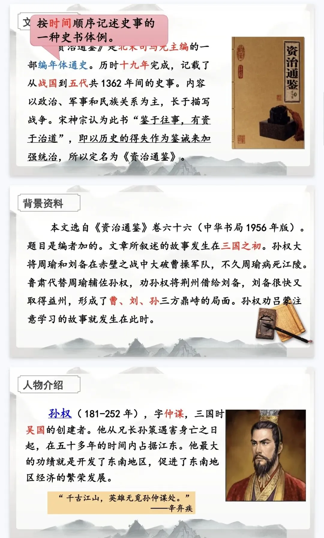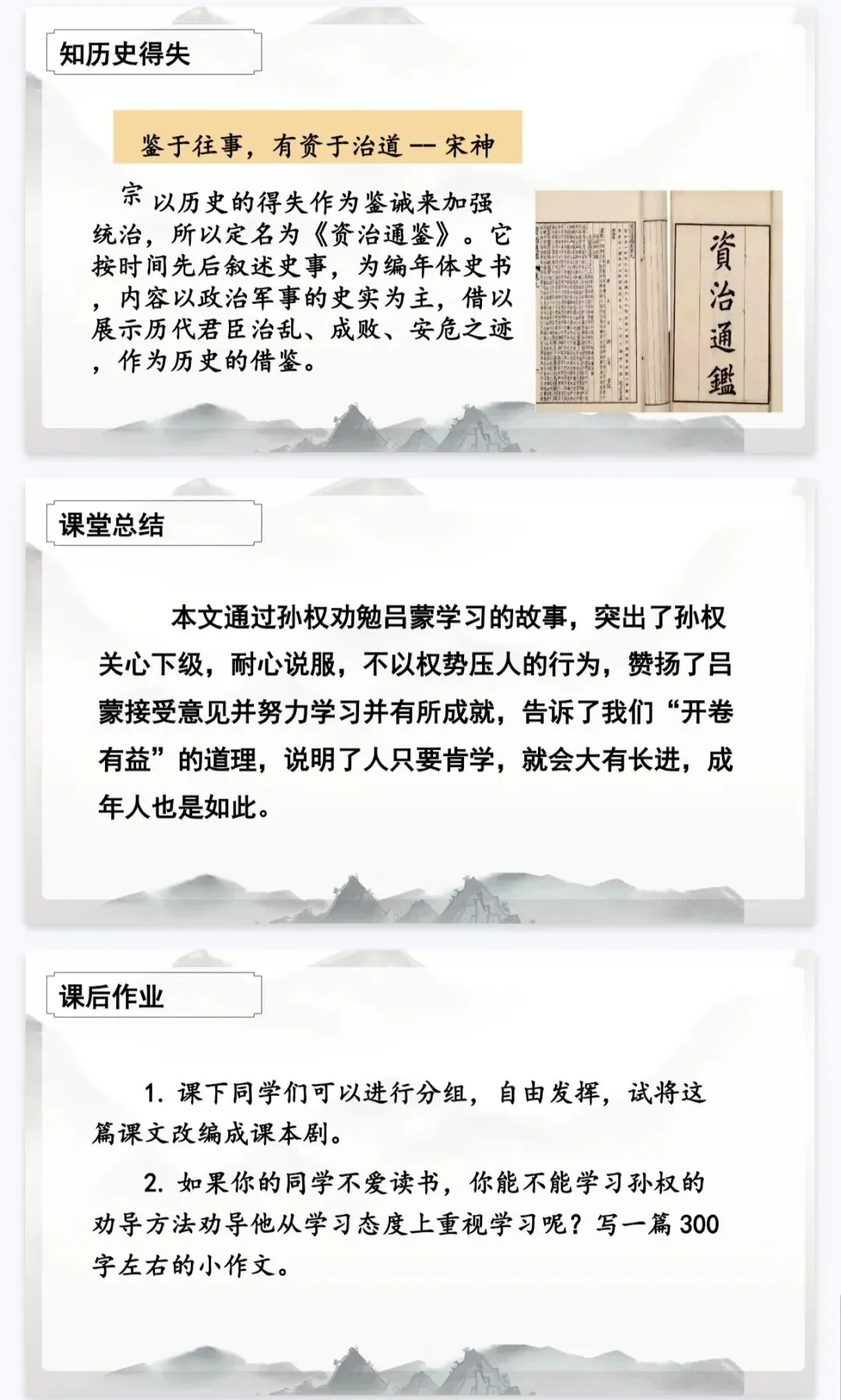 - 历史延伸:结合《三国志》史料,从吕蒙、鲁肃的故事中提炼成长启示,实现“以史鉴今”。