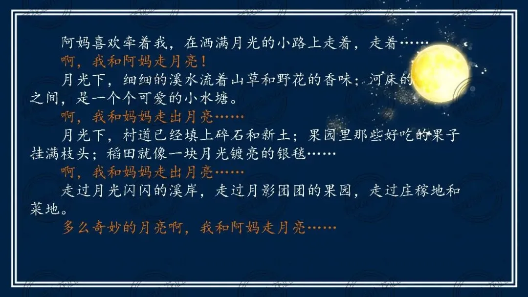 王崧舟老师整节课以“月是故乡明” 为核心锚点,从学生课前生活调查的真实体验切入,用 “他乡月亦明,为何偏说故乡明” 的核心问题贯穿始终。教学打破单篇教学局限,联动《走月亮》《月迹》同类文本,层层拆解故乡之月承载的乡土、乡情与乡趣,最终落脚于中国人的集体乡愁,解锁月亮文学意象的文化密码。