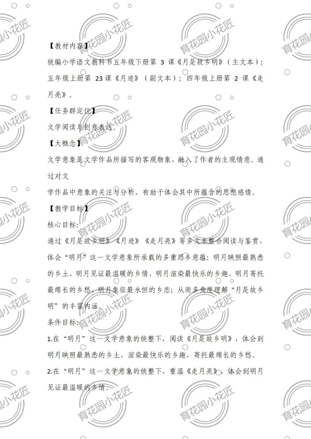 资源为五上《月是故乡明》的公开课(主文本),融合五年级上册《月迹》(副文本);四年级上册第课《走月亮》(副文本)。包含课件(18页)、逐字稿、教学设计、课堂实录,两个课时,执教王崧舟老师。