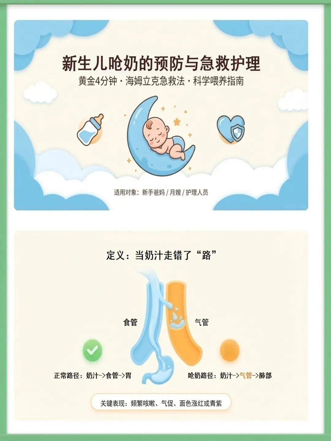 🌲名称:新生儿呛奶的预防与急救护理ppt模板课件模板