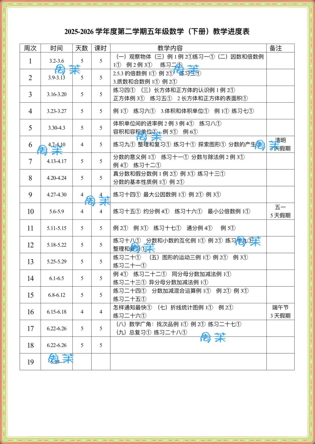 当前位置:首页>教案>26春新版五年级下册数学核心素养教案