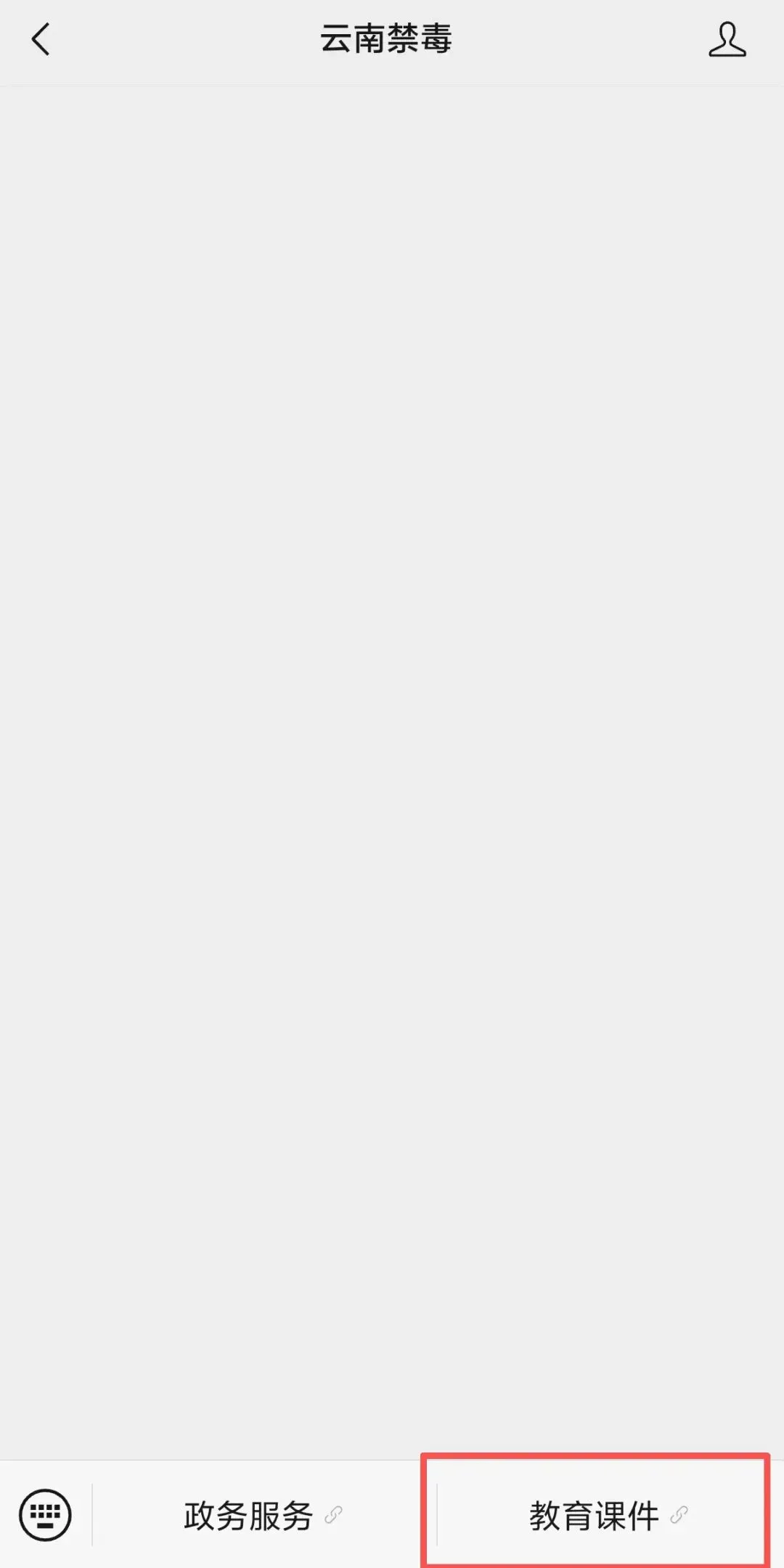 2、进入“云南禁毒”微信公众号微信对话框,点击菜单“教育课件”。