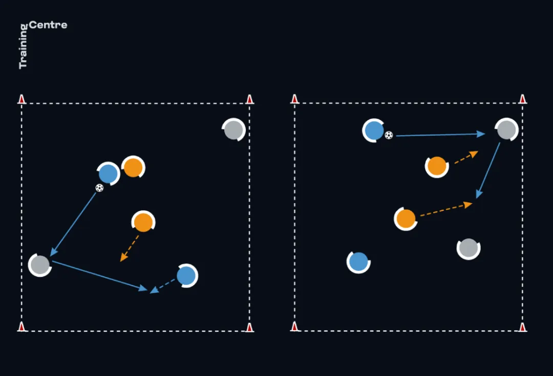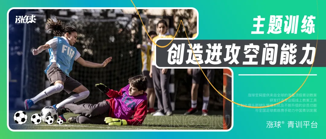 该训练项为「FIFA Training Centre 国际足联「青少年足球」官方教案库」主题训练《提高球员创造进攻空间能力的主题训练》中的热身环节。本项训练旨在提高球员配合、创造和完成进球机会的能力。
