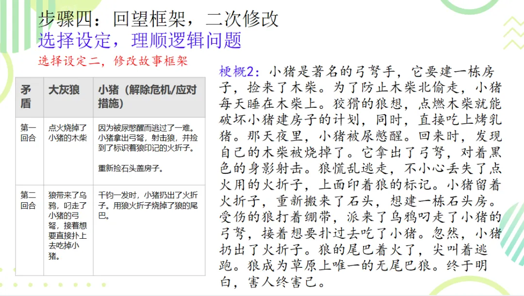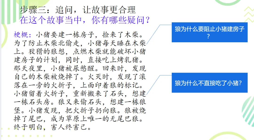 “等着吧,小猪,”狼舔了舔尖牙,“那些木柴会把你变成一只流油的烤猪——”狼的嘴角流下来一串口水,一滴一滴落在草地上。