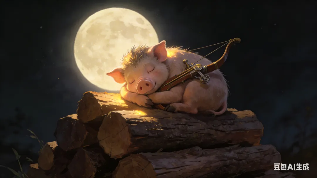为了守护自己辛辛苦苦找来的木柴,每天夜里,小猪都会爬到木柴堆的最顶端,把弓弩紧紧抱在怀里睡觉。月光洒在它圆滚滚的身子上,仿佛给木柴堆戴上了一顶银色的帽子。
