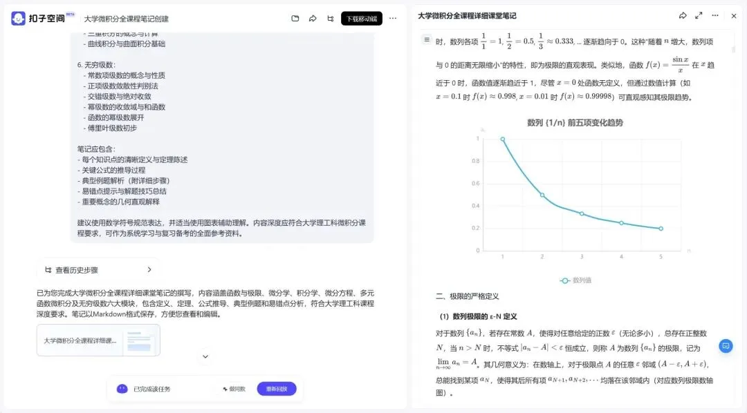 请创建一份全面、系统的大学微积分全课程详细课堂笔记,内容应覆盖以下核心模块:1. 函数与极限基础:- 函数的定义、性质及常见类型(多项式、指数、对数、三角函数等)- 极限的概念、性质及运算法则- 重要极限公式及证明思路- 函数连续性的判定与间断点分类2. 一元函数微分学:- 导数的定义、几何意义及物理意义- 基本求导公式与法则(四则运算、复合函数、隐函数等)- 高阶导数与莱布尼茨公式- 微分的概念及应用- 中值定理(罗尔定理、拉格朗日中值定理、柯西中值定理)- 洛必达法则及应用- 函数单调性、极值与最值的判定- 函数凹凸性与拐点分析- 函数图像绘制方法3. 一元函数积分学:- 不定积分的概念与性质- 基本积分公式与积分法则- 换元积分法与分部积分法- 有理函数积分与三角函数积分技巧- 定积分的定义、性质及几何意义- 微积分基本定理(牛顿-莱布尼茨公式)- 定积分的计算方法- 反常积分的概念与计算- 定积分的应用(面积、体积、物理应用等)4. 微分方程初步:- 微分方程的基本概念与分类- 一阶微分方程的解法(可分离变量、齐次、线性等)- 高阶线性微分方程的解法- 微分方程的应用模型5. 多元函数微积分:- 多元函数的概念、极限与连续性- 偏导数与全微分- 复合函数与隐函数求导法则- 多元函数的极值与条件极值- 二重积分的概念、性质与计算- 三重积分的概念与计算- 曲线积分与曲面积分基础6. 无穷级数:- 常数项级数的概念与性质- 正项级数敛散性判别法- 交错级数与绝对收敛- 幂级数的收敛域与和函数- 函数的幂级数展开- 傅里叶级数初步笔记应包含:- 每个知识点的清晰定义与定理陈述- 关键公式的推导过程- 典型例题解析(附详细步骤)- 易错点提示与解题技巧总结- 重要概念的几何直观解释建议使用数学符号规范表达,并适当使用图表辅助理解。内容深度应符合大学理工科微积分课程要求,可作为系统学习与复习备考的全面参考资料。