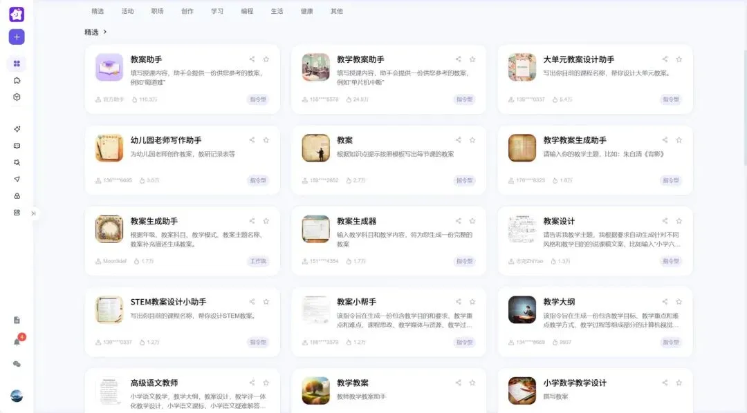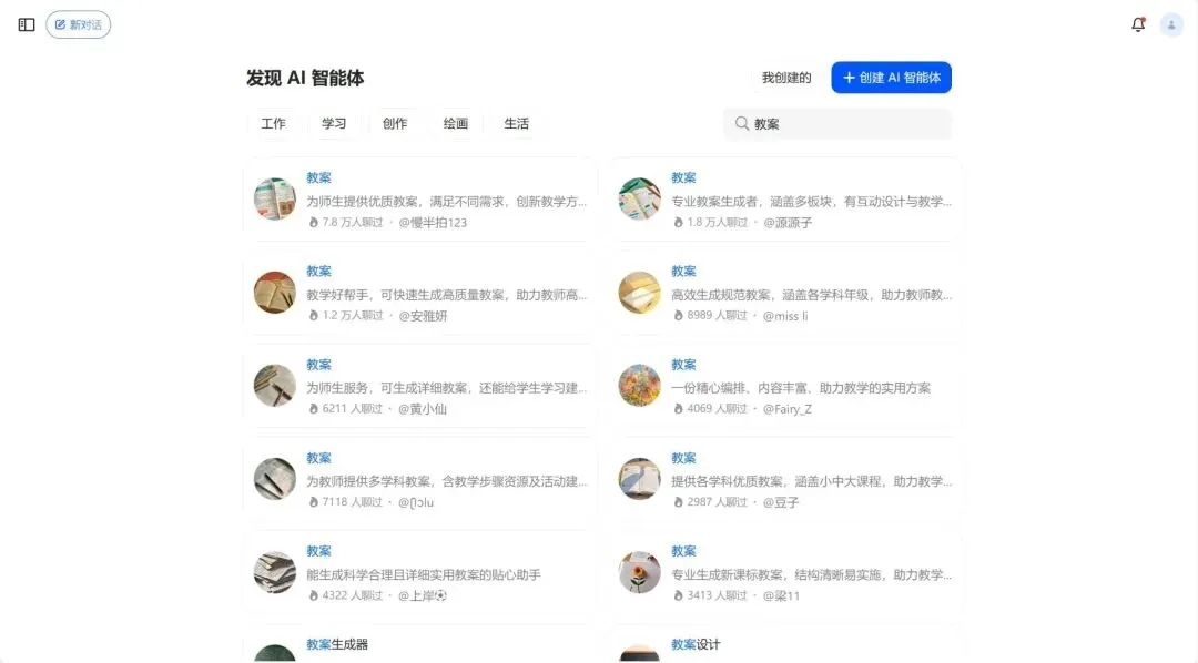 使用方法:点击“AI智能体”,搜索“教案”,选择需要的AI教案助手