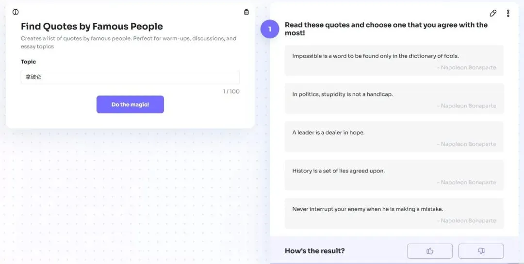进入产品首页,选择模板,例如:Find Quotes by Famous People(查找名人名言)