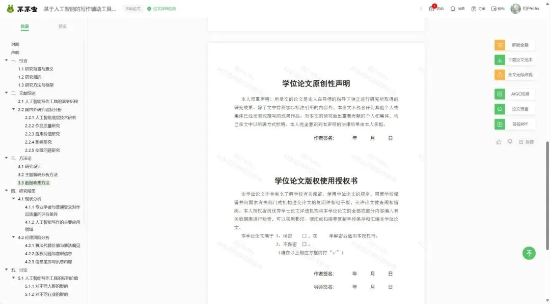 除此之外,还支持AIGC降重、生成开题报告、答辩PPT等