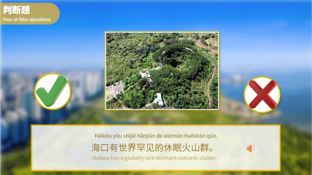 判断题结合海口有世界罕见休眠火山群这一知识点,考查学生对相关信息的掌握。